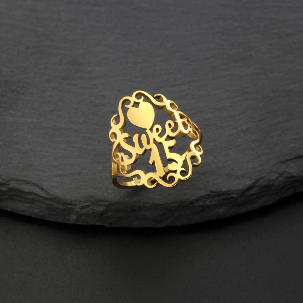 Dreamtimes SWEET Heart Numéro 15 Bagues Pour Femmes Hommes Lettres Creuses Main Doigt Bijoux Accessoires Cadeaux