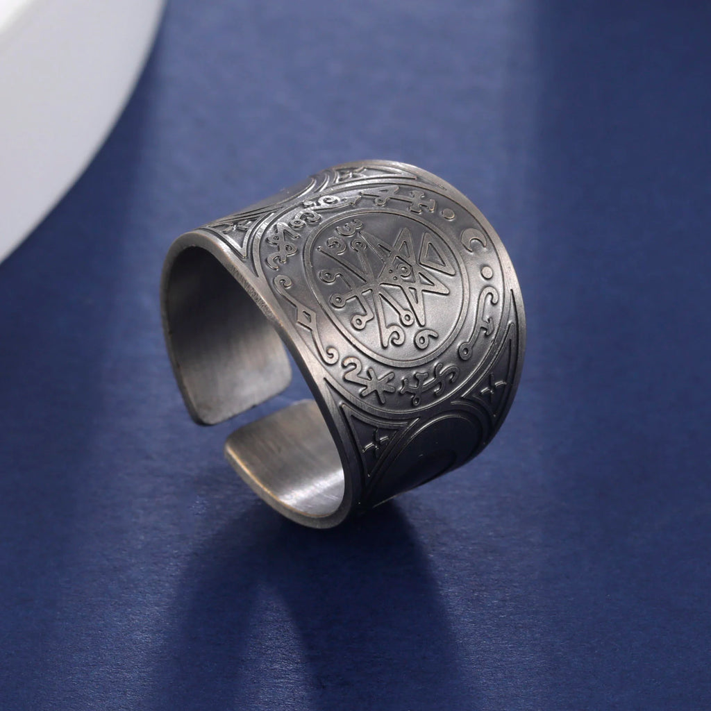 Bague Dreamtimes, Sceau des 7 Archanges, Bague Punk Hexagramme pour Homme, Bijou Amulette Symbole Cube de Métatron