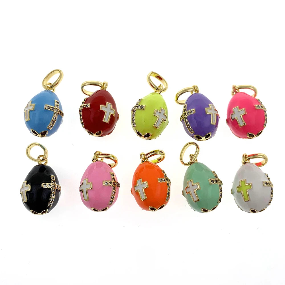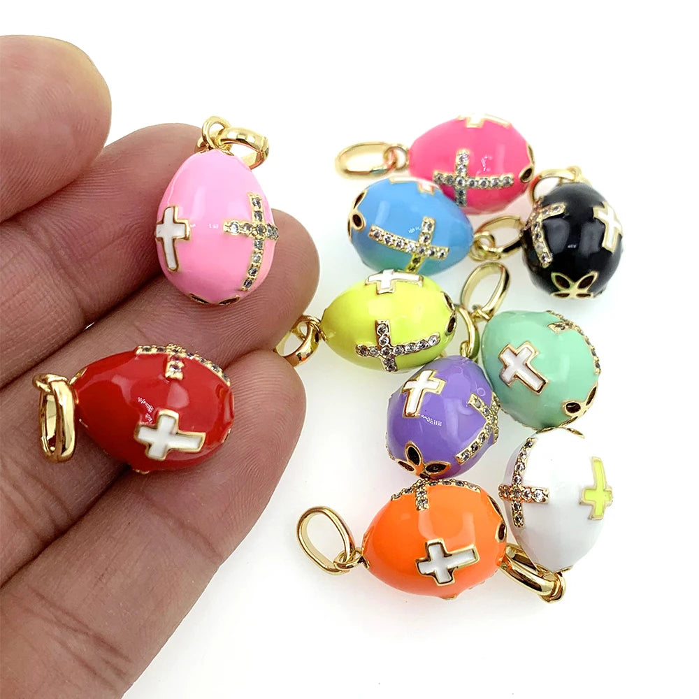 Collier avec pendentif en forme d'œuf de Fabergé russe en forme de croix religieuse pour le jour de Pâques, en émail coloré rose et zircone cubique, plaqué or, accessoire cadeau pour femme
