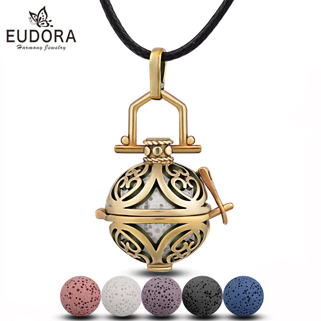 Collier Eudora en pierre de lave volcanique 16 mm avec pendentif en forme de cœur et diffuseur de parfum et d'arômes, bijoux d'aromathérapie, cadeau pour femme