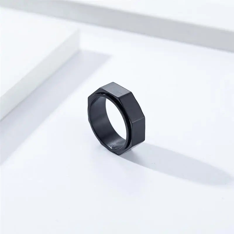 Bague hexagonale tendance en acier titane, forme écrou, anti-anxiété, décompression, bague tournante neutre, coloris argent et or