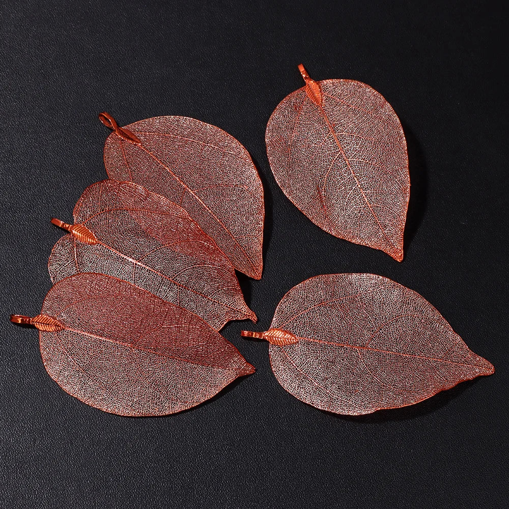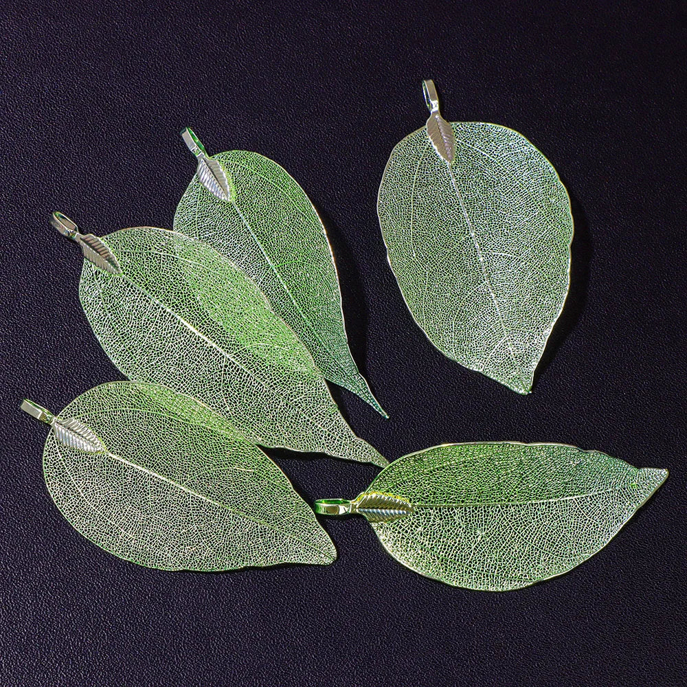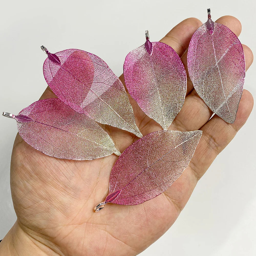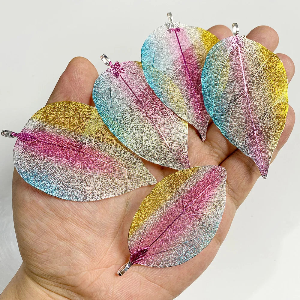 Pendentif en métal avec de véritables feuilles naturelles multicolores, idéal pour la création de bijoux (boucles d'oreilles, colliers, etc.) - Lot de 5