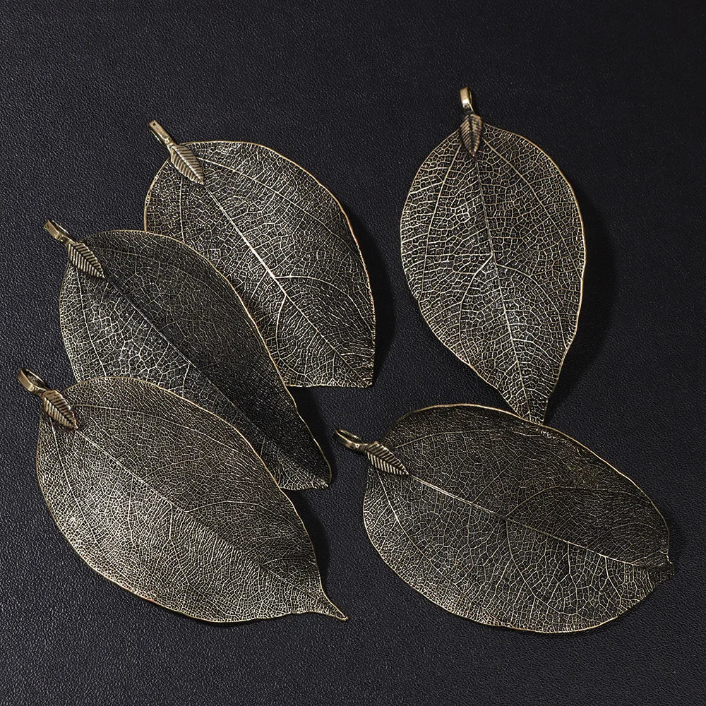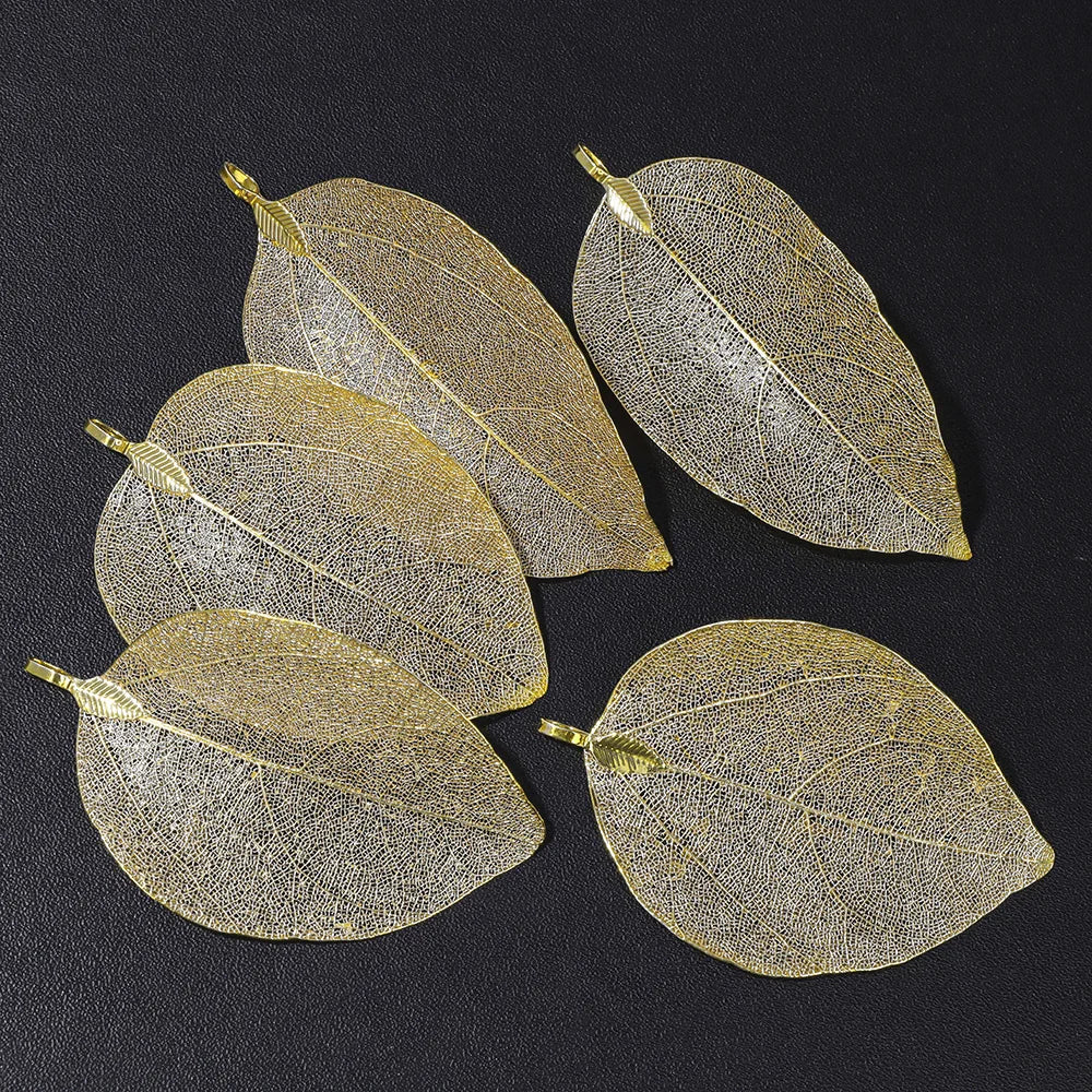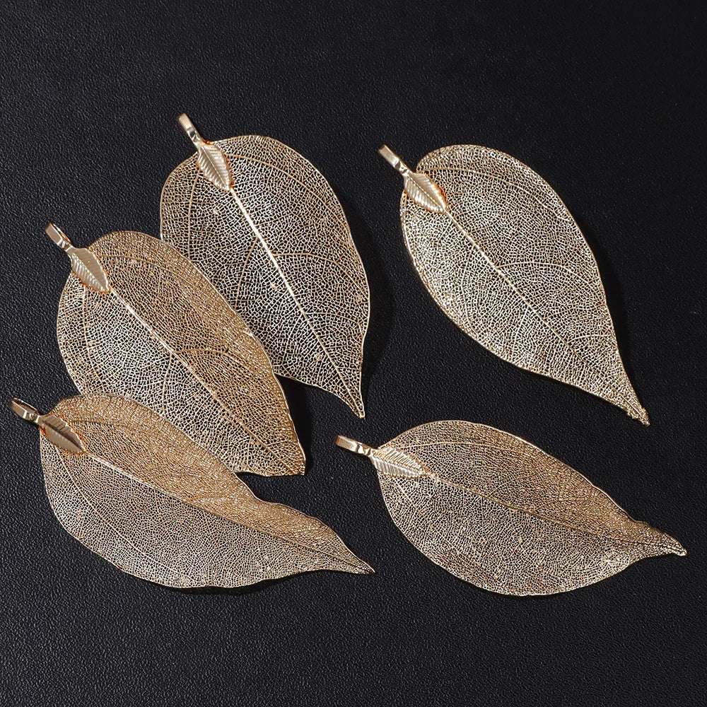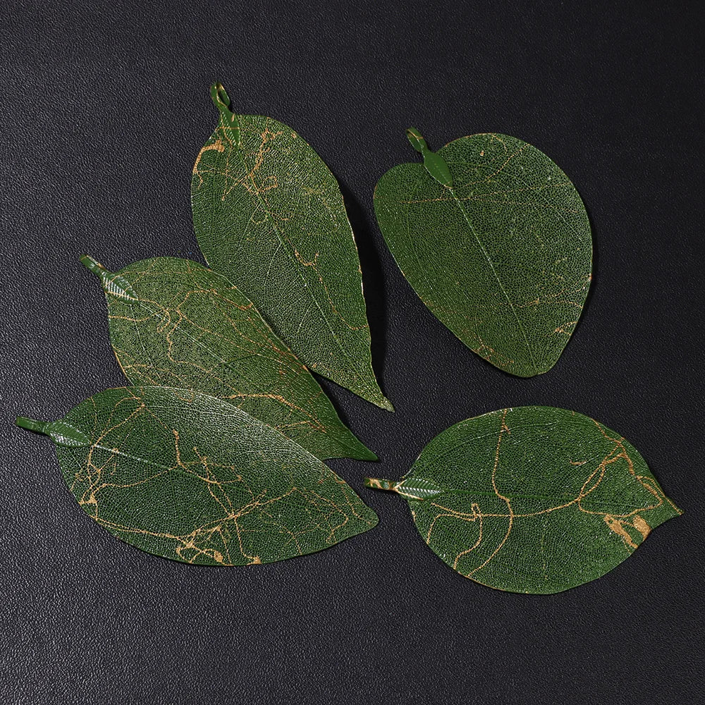 Pendentif en métal avec de véritables feuilles naturelles multicolores, idéal pour la création de bijoux (boucles d'oreilles, colliers, etc.) - Lot de 5