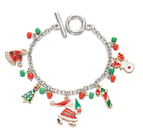Bracelet pendentif Père Noël, bonhomme de neige, étoile et sapin de Noël pour femme, ajustable, bijou de fête