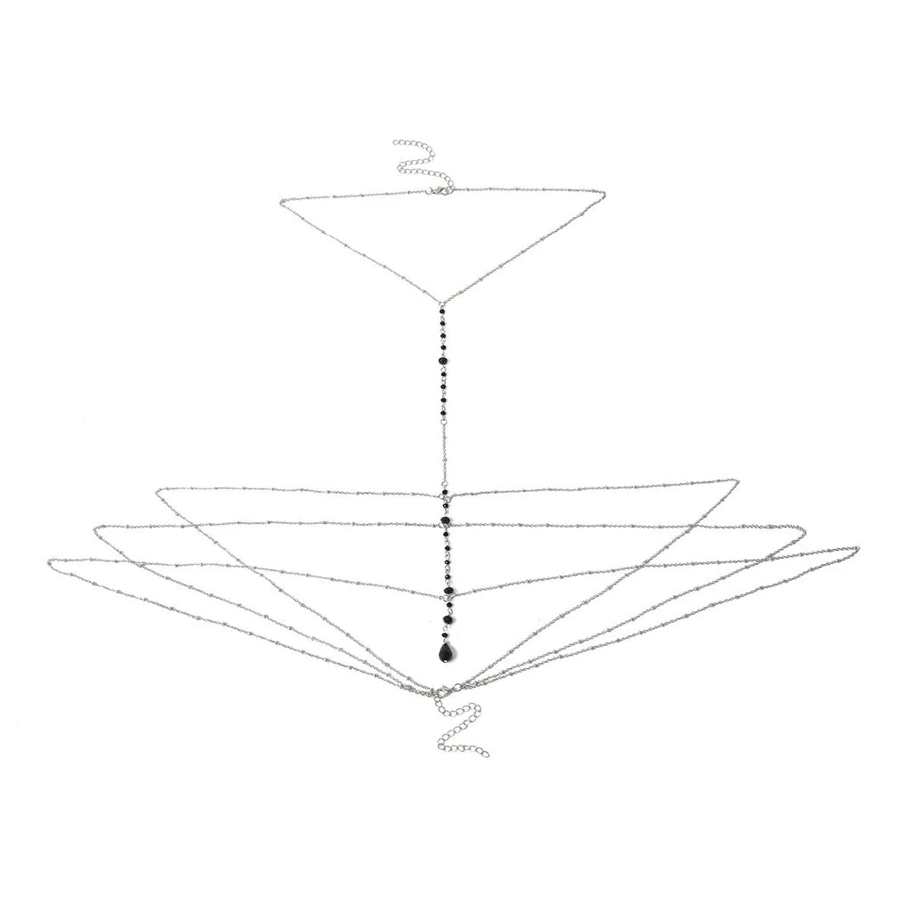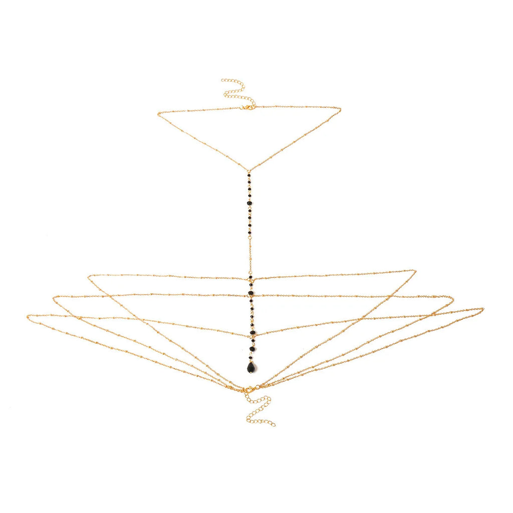 Fashionable Multi-layer Hanging Neck Style Black Crystal Bead Chain Ladies' Chest Chain Jewelry
