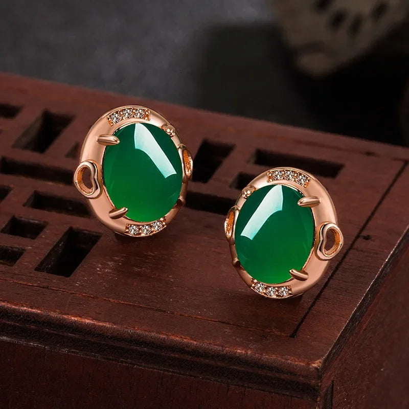 Female Luxury 14k gold filled Earrings Stud natural Green chalcedony Stone Earrings larimar Vintage fine Small Earring For Women