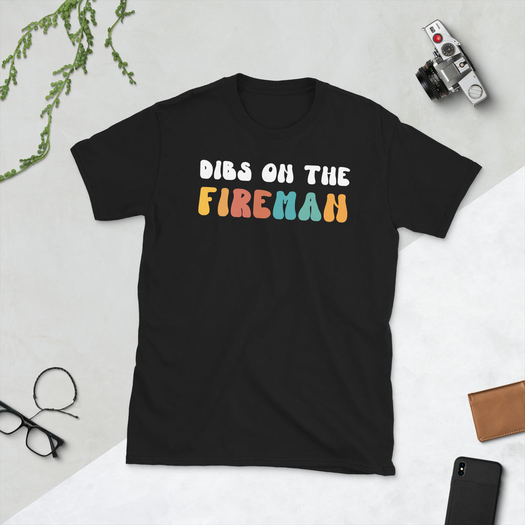T-shirt femme pompier, Dibs on the Fireman, t-shirt petite amie femme pompier groovy, t-shirt femme pompier, cadeau femme de pompier, t-shirt pompier