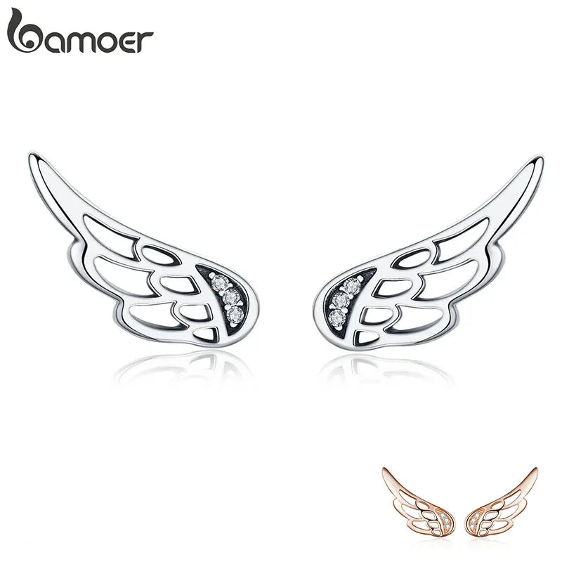 Boucles d'oreilles à tige en argent sterling 925 véritable avec ailes de fée en plumes pour femmes, bijoux en argent tendance de Noël SCE343