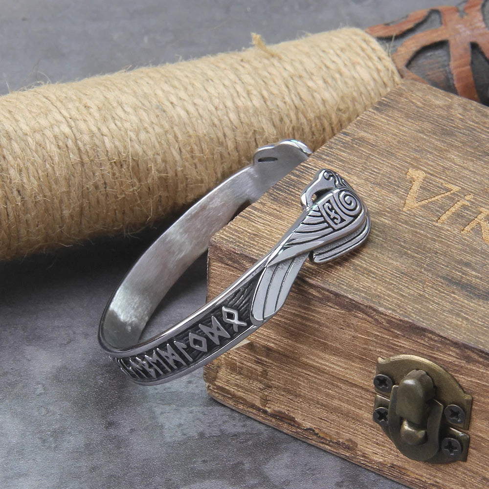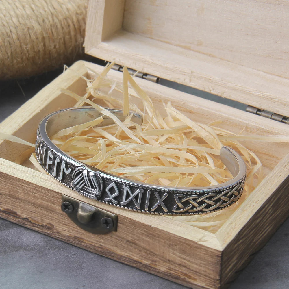 Bracelet jonc runique nordique fait main (avec coffret cadeau en bois)
