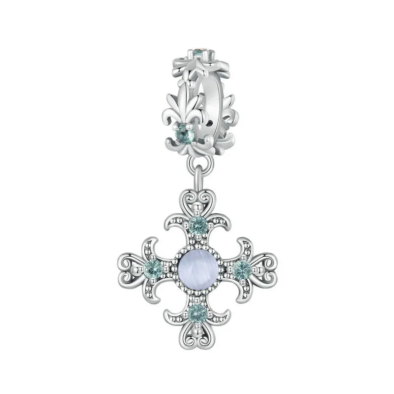 Breloque croix Iris pour femme en argent sterling 925, pendentif croix, pendentif initial en forme de fleur, adapté au bracelet à breloques, Noël, bricolage