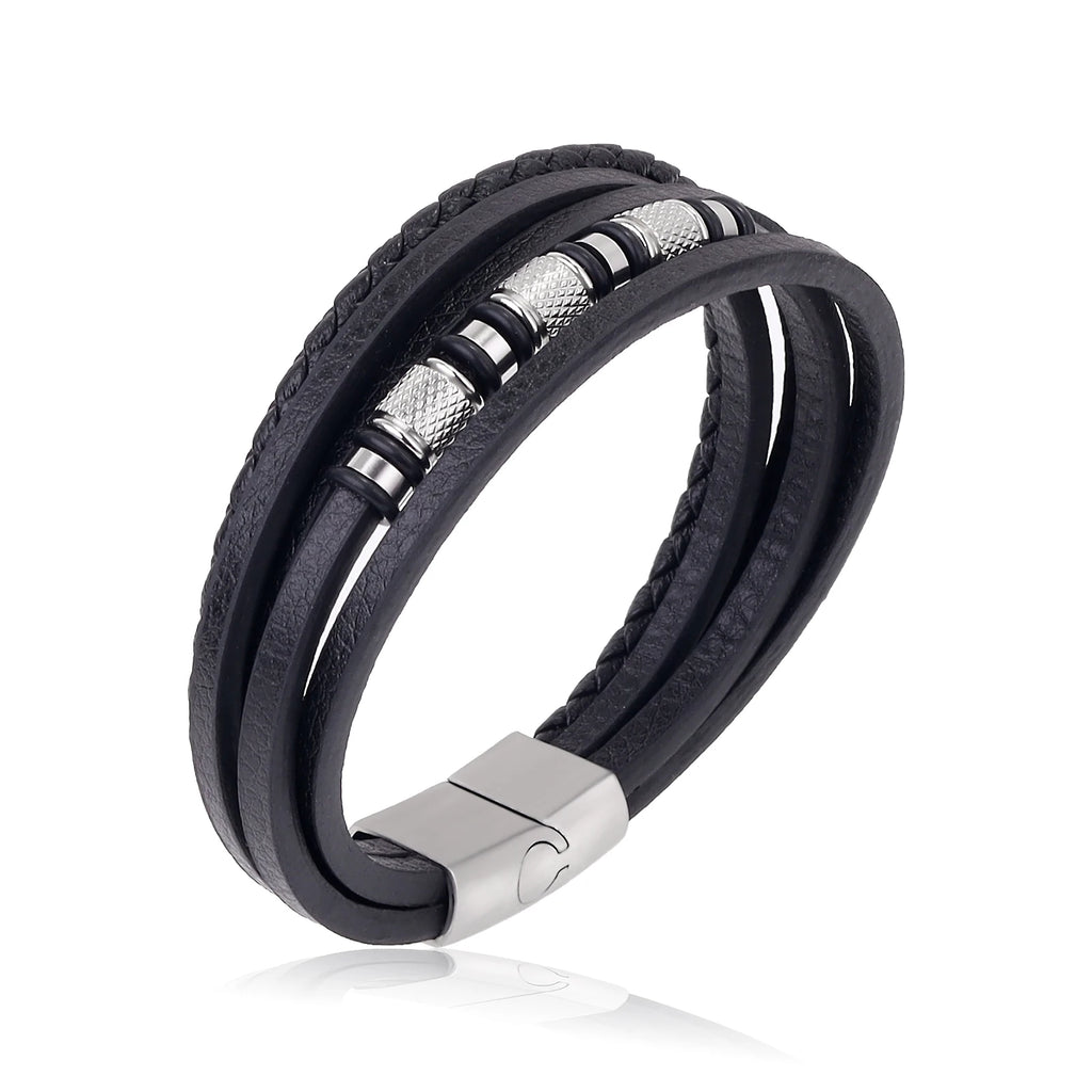 Bracelet de luxe en acier inoxydable et perles, bijou tendance pour homme, bracelet classique multicouche en cuir tressé, cadeau idéal pour le Nouvel An.