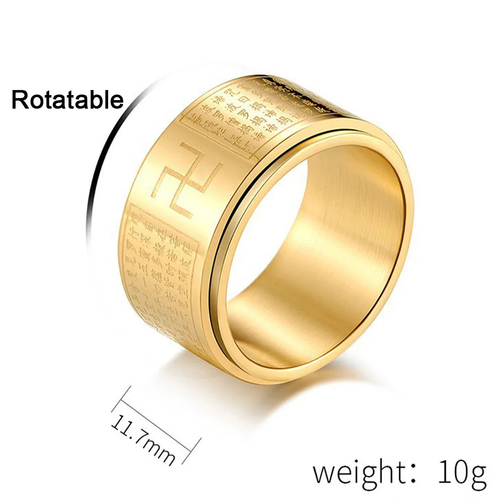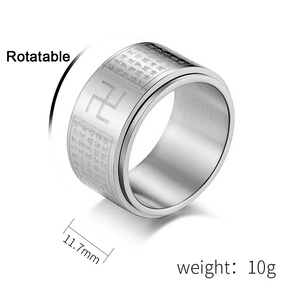 Bague tournante Manji Swastika Sutra du Cœur pour homme, en acier inoxydable, accessoire bouddhiste, bijou de créateur, cadeau bouddhiste