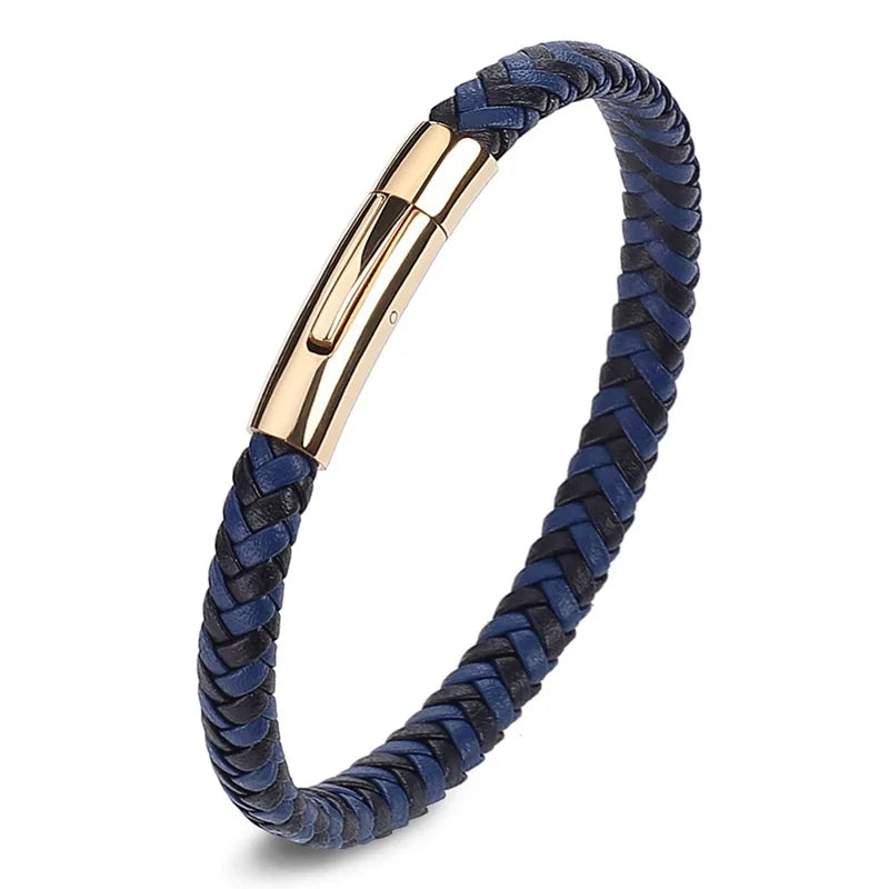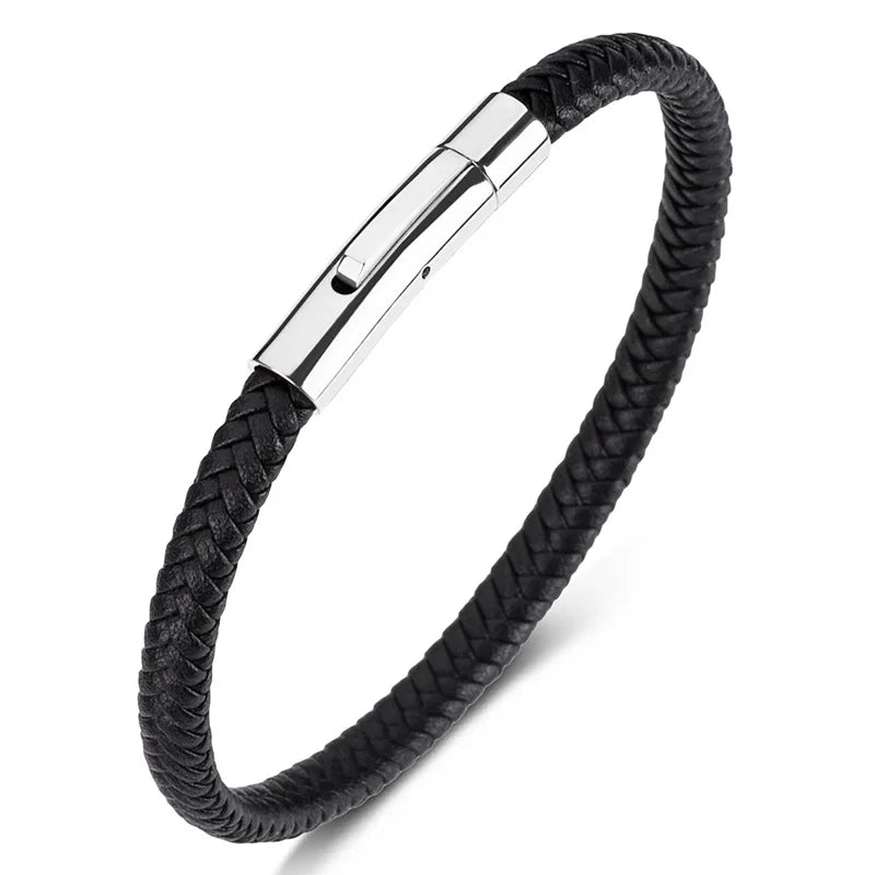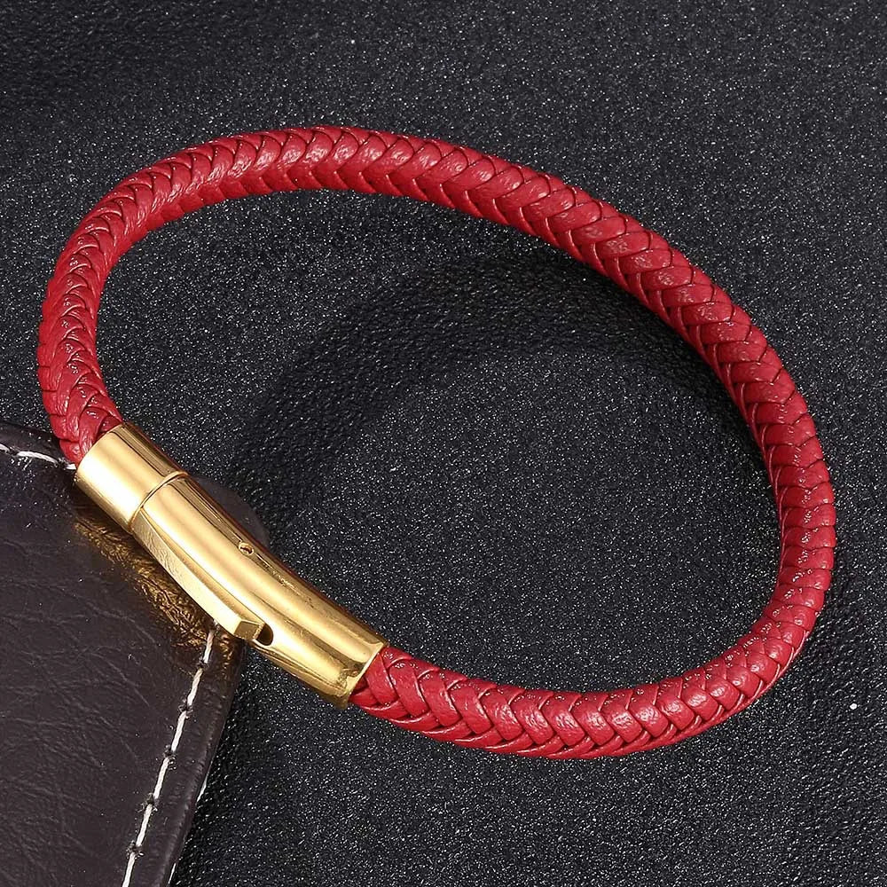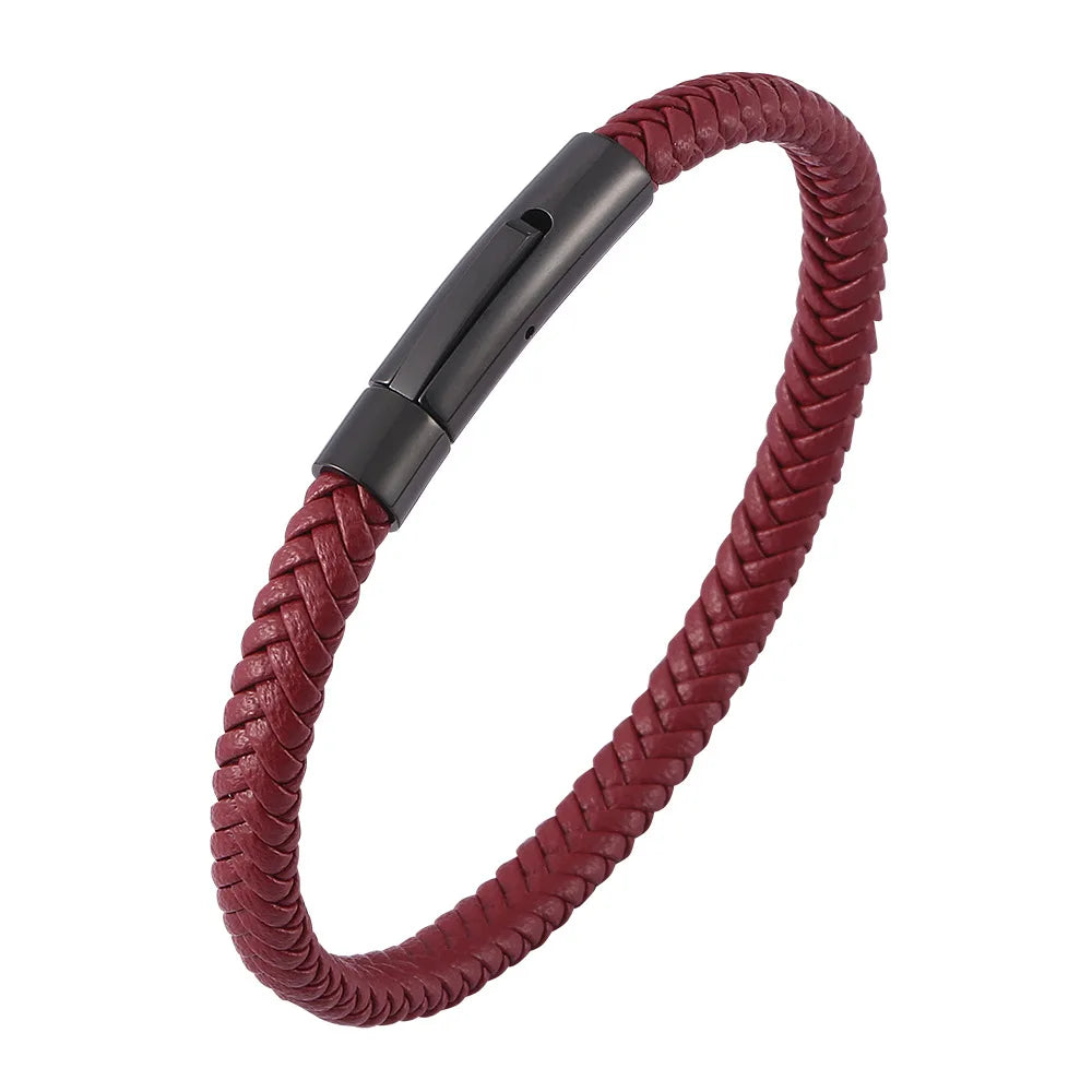 Bracelet MKENDN Classique Homme Femme en acier inoxydable, cuir rouge bordeaux tressé, haute qualité, bouton noir, bijou cadeau