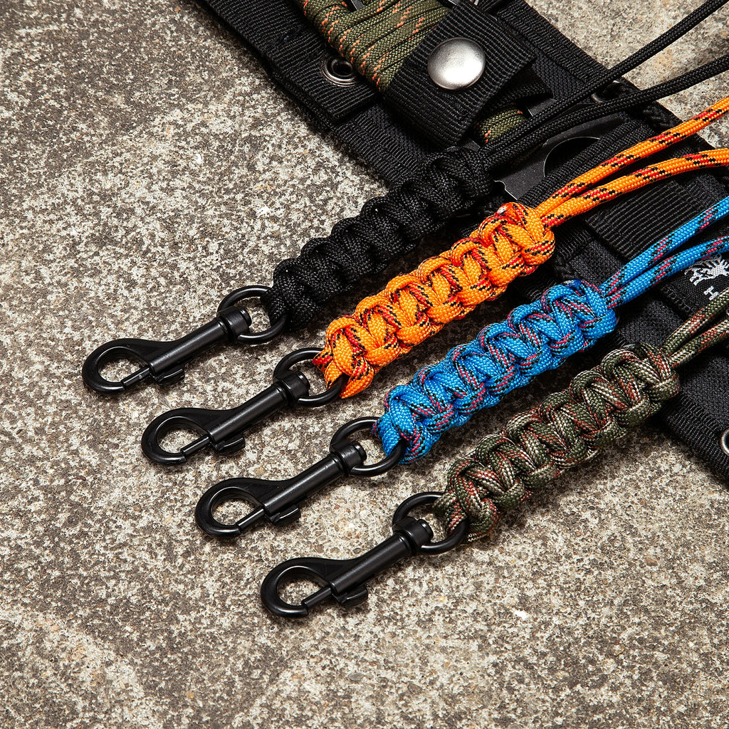 MKENDN Porte-clés en paracorde avec crochet métallique pour homme et femme, dragonne d'urgence pour l'escalade en extérieur, porte-cartes d'identité et d'identification.