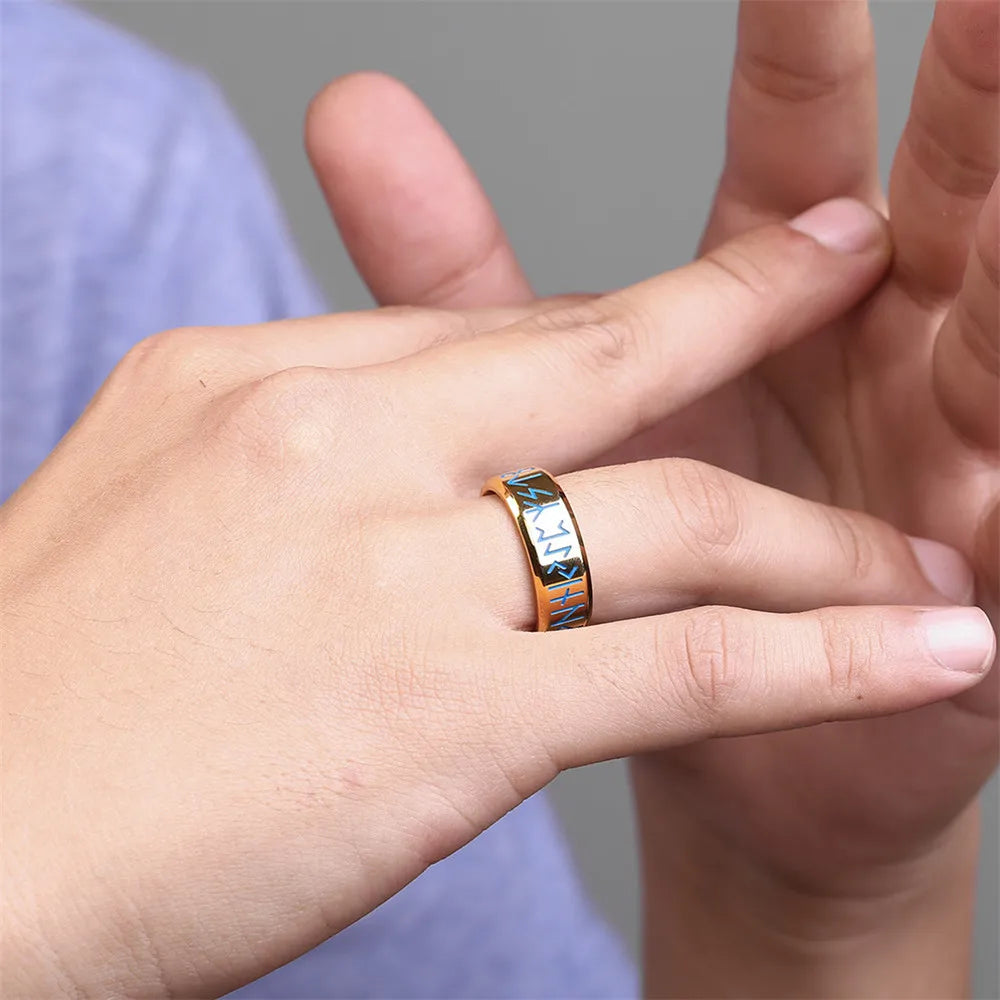 Bague MKENDN Viking Norse Runes Futhark pour homme, en acier inoxydable doré lumineux, amulette Vegvisir, bijou islandais, cadeau