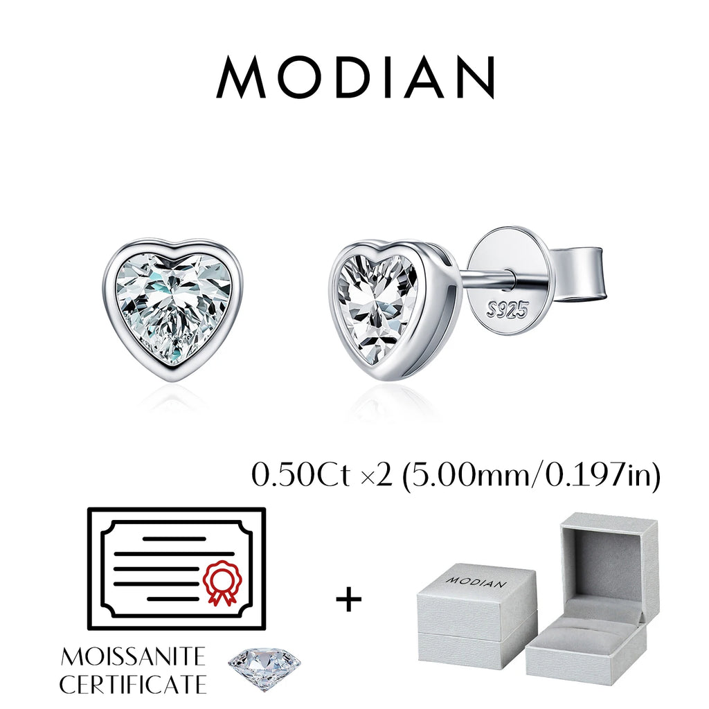 MODIAN 3 Sizes Heart Moissanite Ear Studs 925 Sterling Silver Dazzling Stackable Fashion Stud Earrings For Women Fine Jewelry