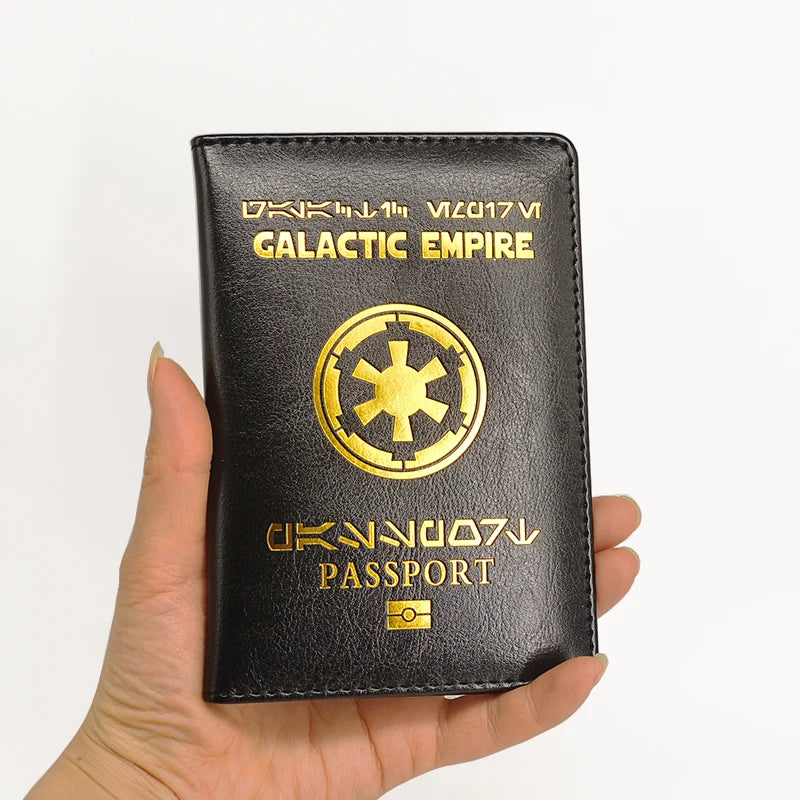 Couverture de passeport en cuir PU noir avec nouveau logo de l'Empire Galactique pour passeports, portefeuille de voyage, organisateur de documents, porte-passeport
