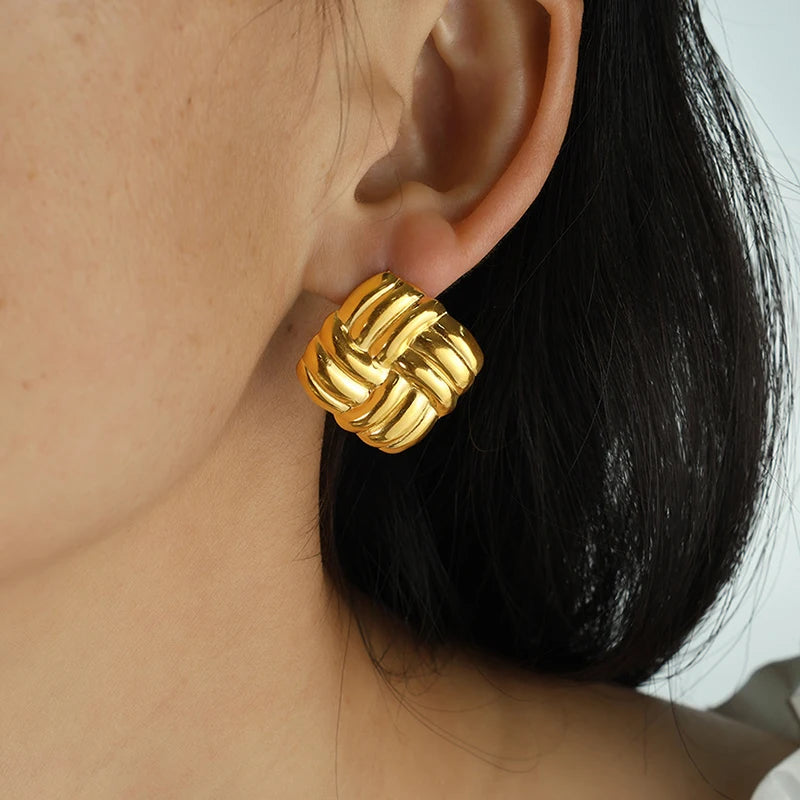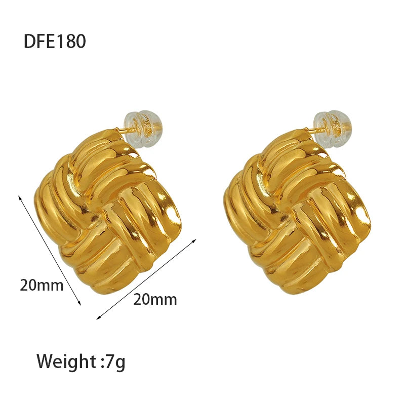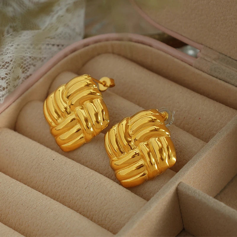 Boucles d'oreilles à texture torsadée en acier inoxydable PVD plaqué or 18 carats, boucles d'oreilles carrées élégantes pour femmes, bijoux étanches, cadeau