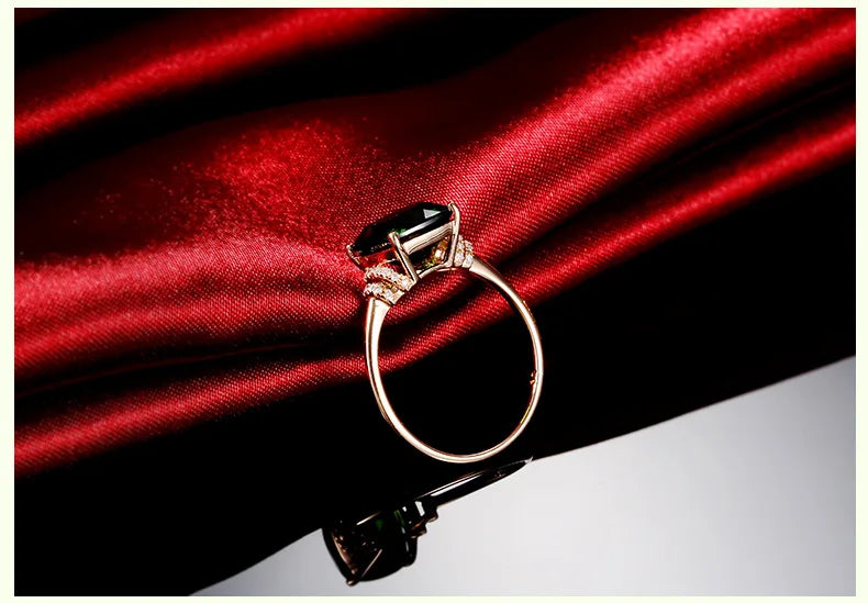 Bague en or rose 14 carats véritable avec émeraude verte naturelle pour grand-mère, bijoux pour femmes, pierres précieuses émeraude, topaze, bijoux Bizuteria, bagues en or 14 carats