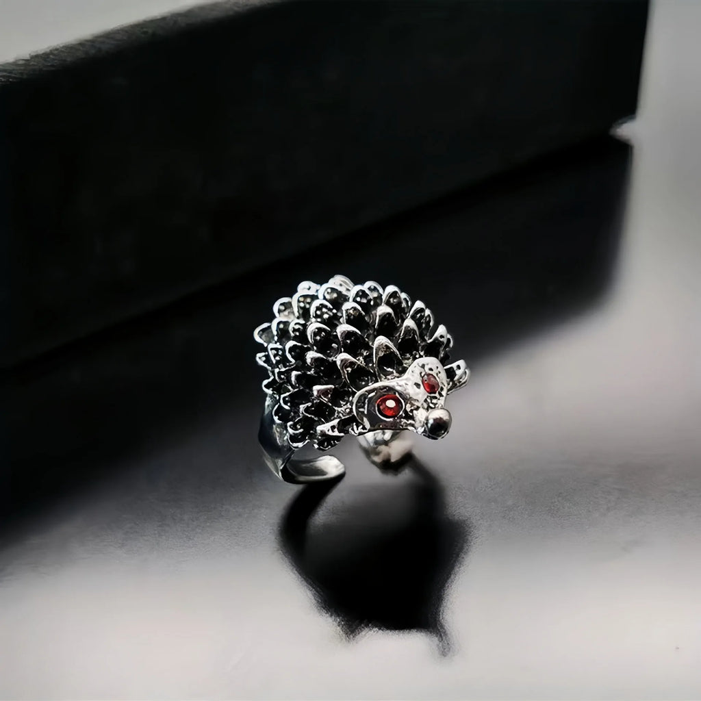 Retro Red Eye Hedgehog Ring For Men Women Punk Gothic Rock Hiphop Open Ring Handmade Designer Jewelry Unisex Accessories Gift