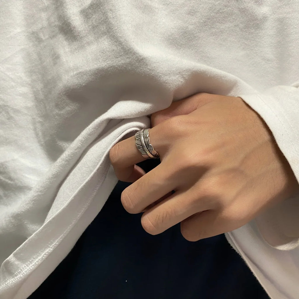 Retro The Guardian Angel Feather Ring For Men Women Punk Gothic Adjustable Open Ring Unisex Jewelry Accessories Gift For Lovers