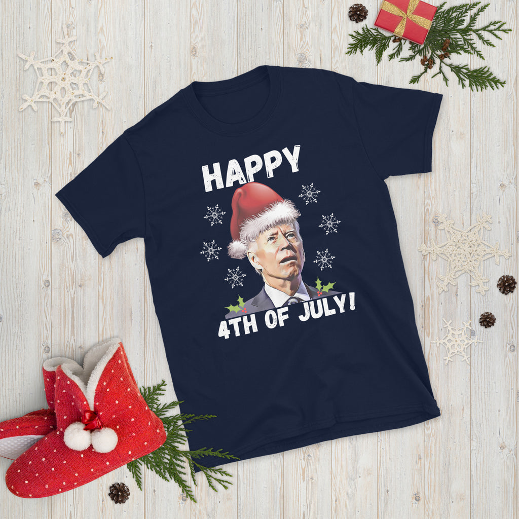 T-shirt de Noël Santa Joe Biden, T-shirt de Noël moche et joyeux 4 juillet, T-shirt de Noël Biden, Cadeau de Noël FJB, T-shirt drôle de Biden