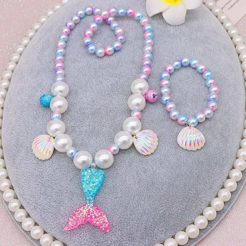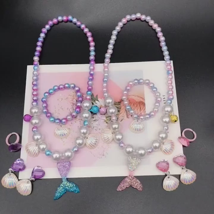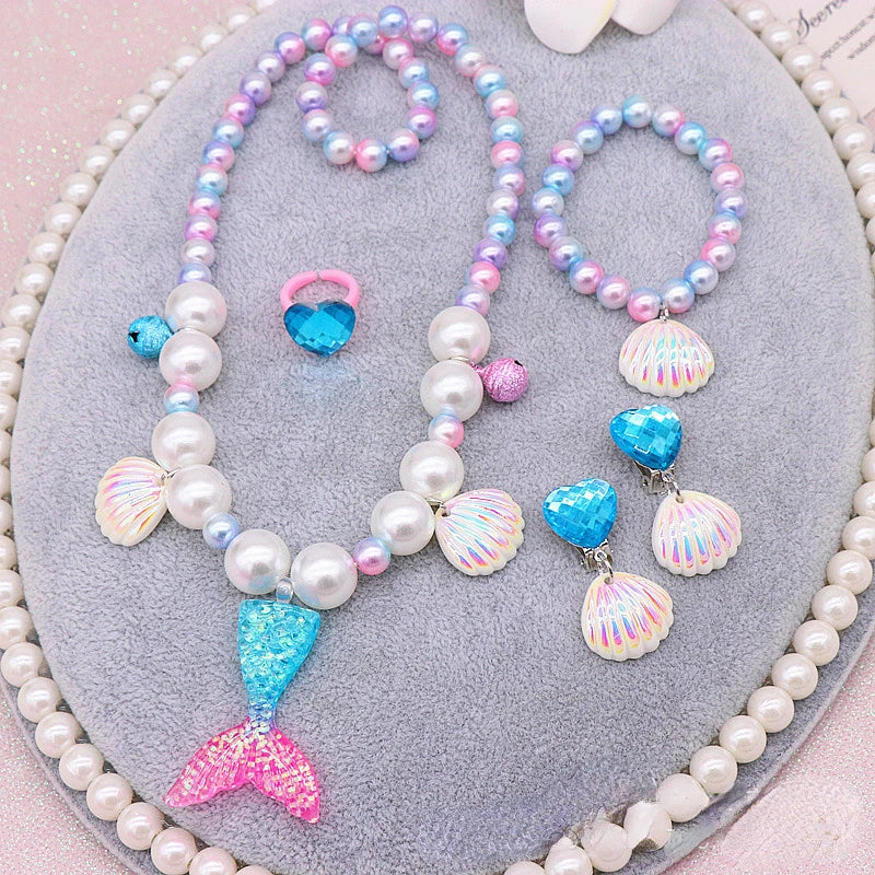 Ensemble de collier / bracelet / bague / boucle d'oreille en perles de sirène pour filles