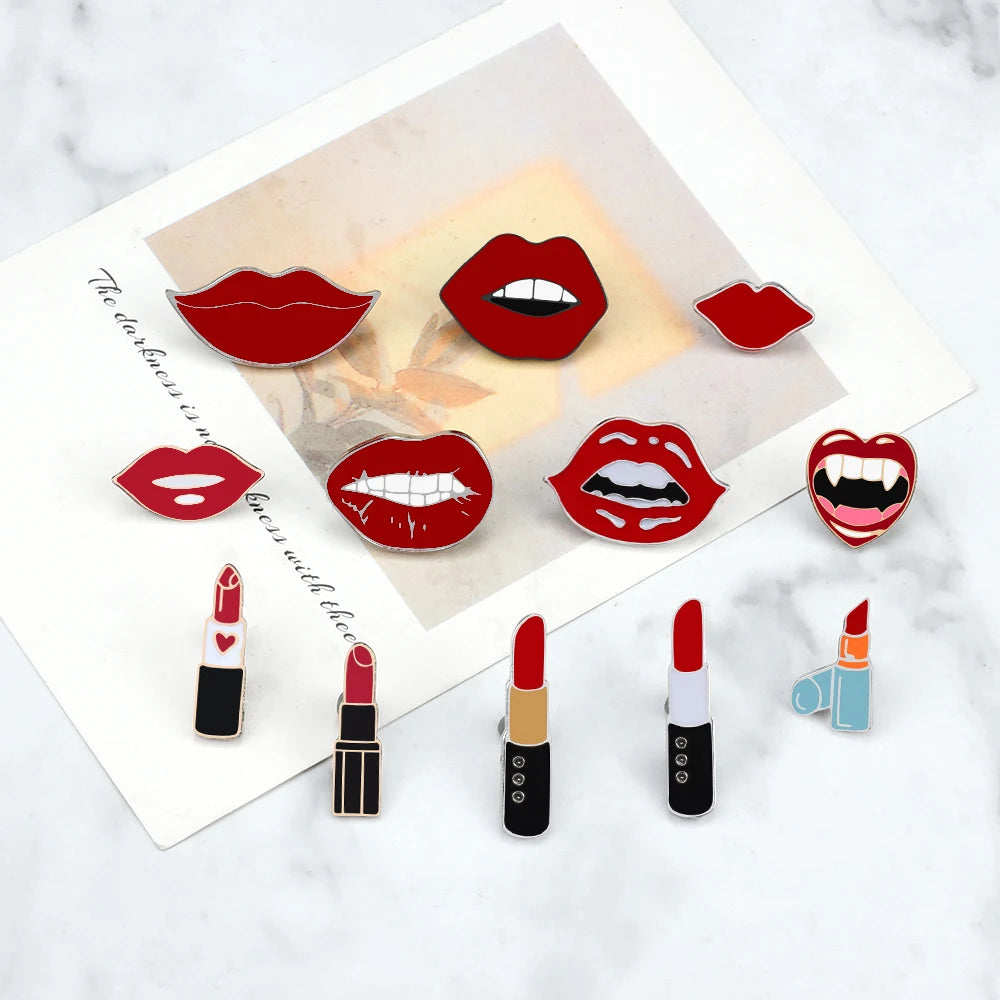 Sexy Girl Red Lips and Lipsticks Enamel Pins Women Charm Metal Brooches Coat Hat Bag Lapel Pin Badges Jewelry Accessories Gift