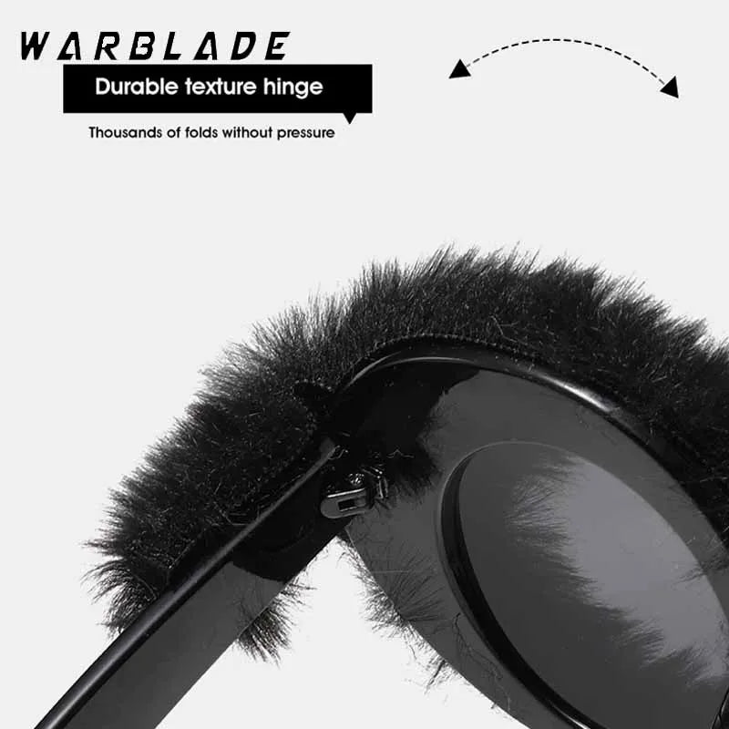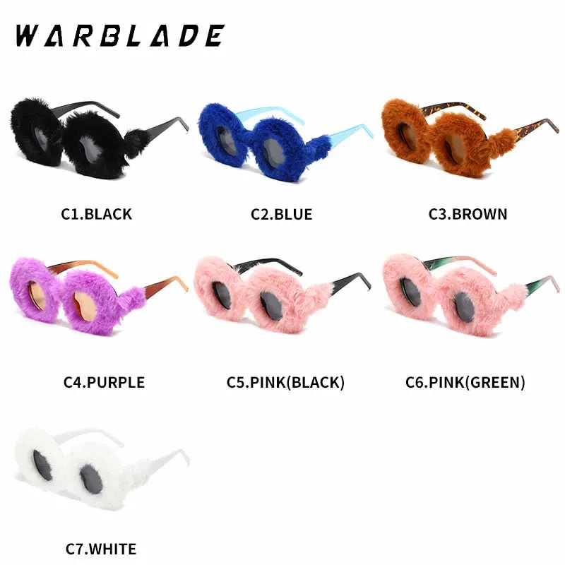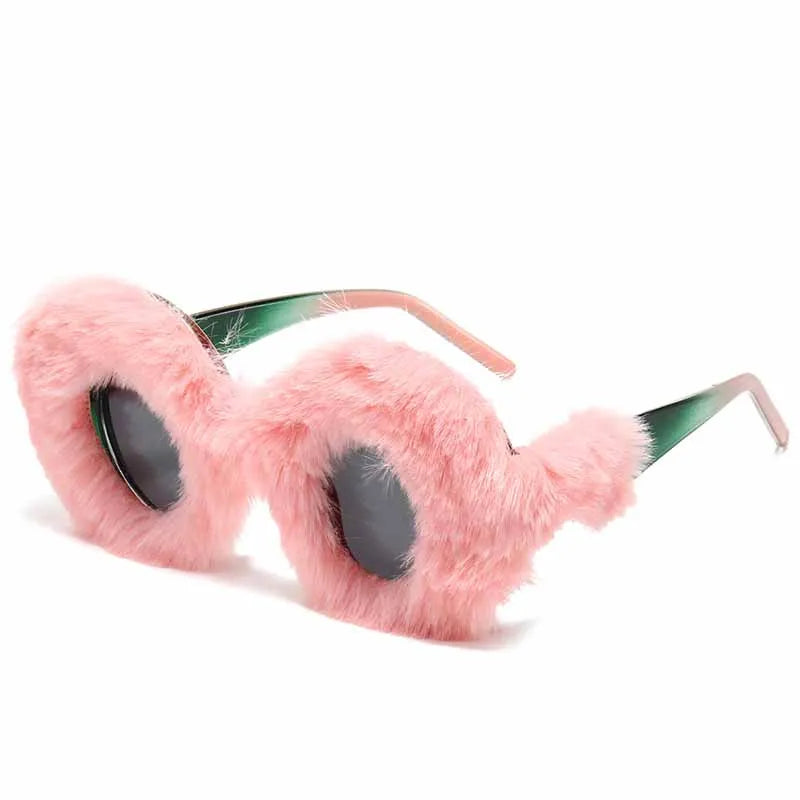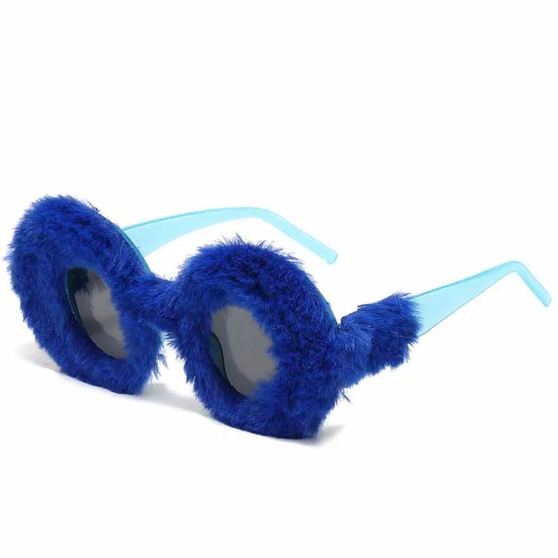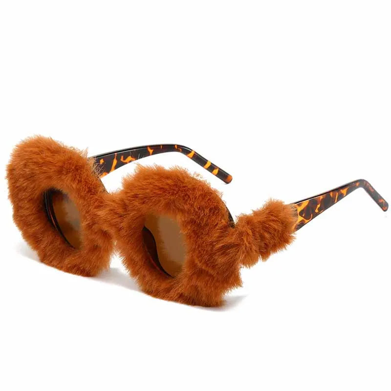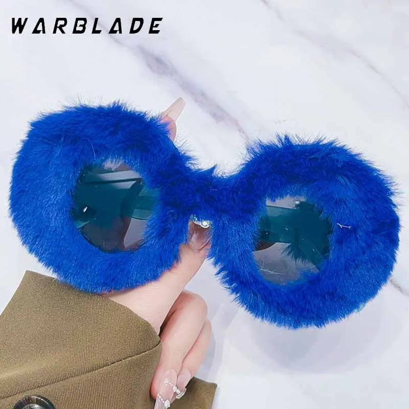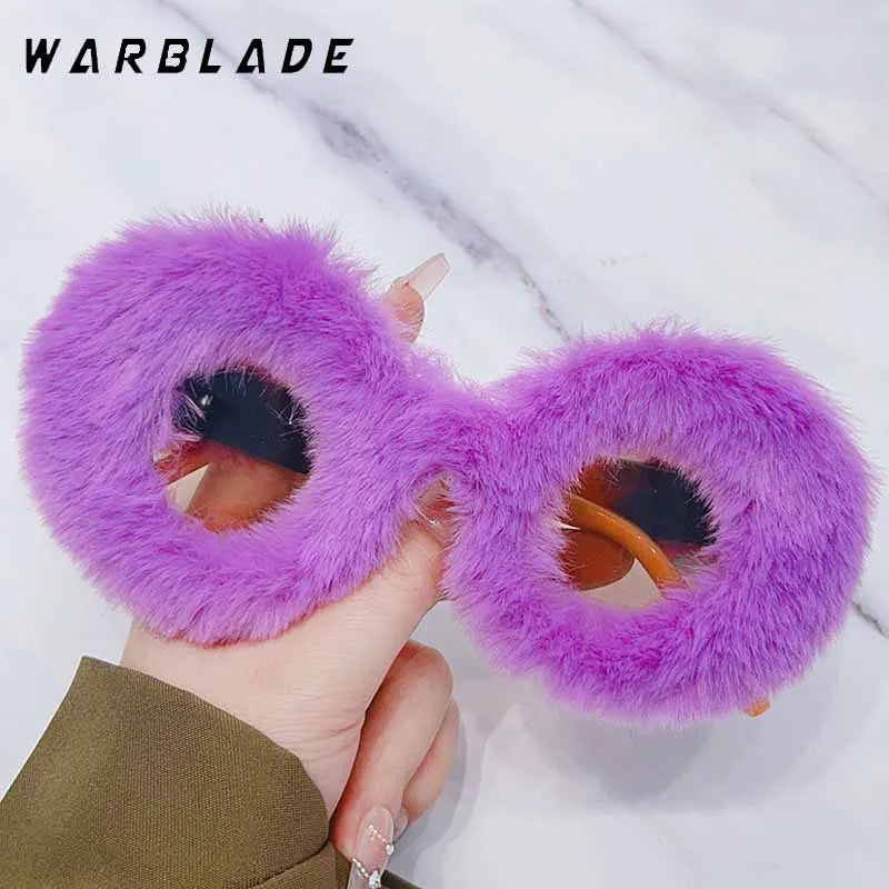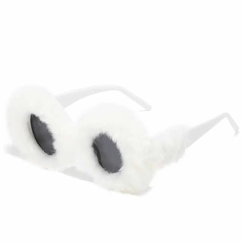 Lunettes de soleil rondes en fourrure douce pour femmes et hommes 2025, tendance, surdimensionnées, en peluche, pour l'hiver, pour la neige, pour dames, UV400, lunettes de fête