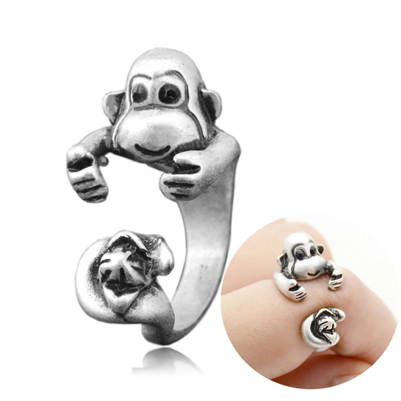 Vintage Colar Handmade Monkey With Banana Ring Punk Animal Anel Masculino Couple Anillos Love Rings For Women Men Jewelry Gifts