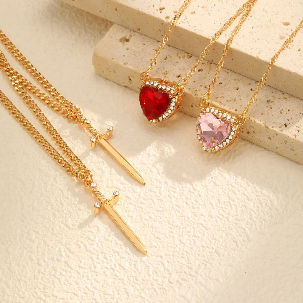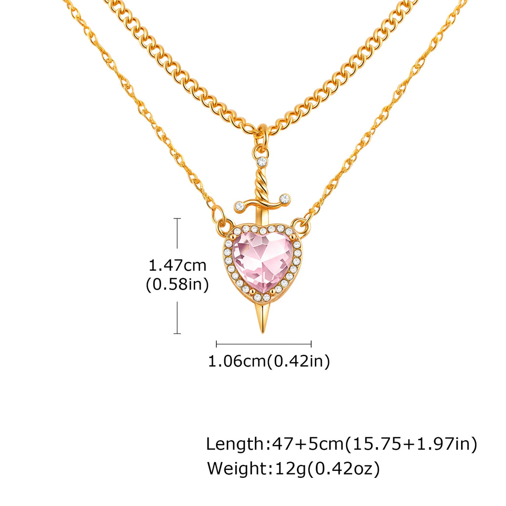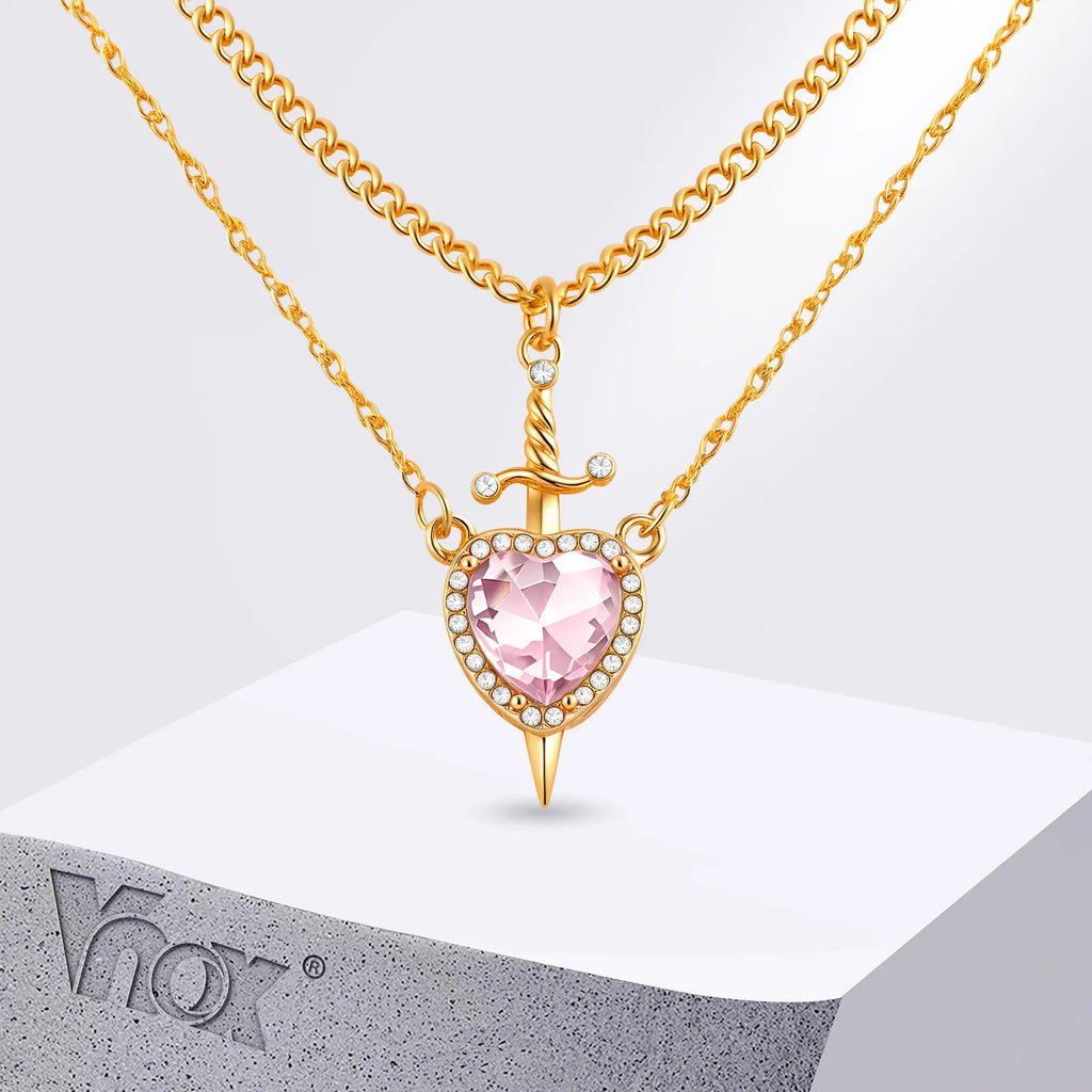 Vnox 2pcs Pendant Necklace For Women Men Zircon Heart And Sword Can Assemble Love Couple Gold Plated Choker Charm Jewelry Gifts