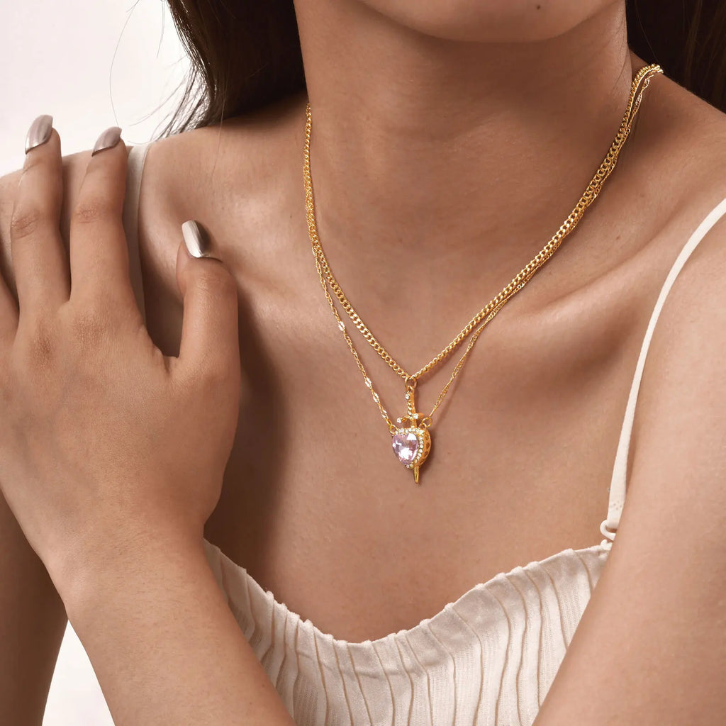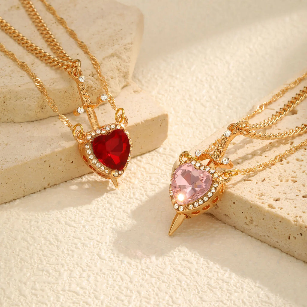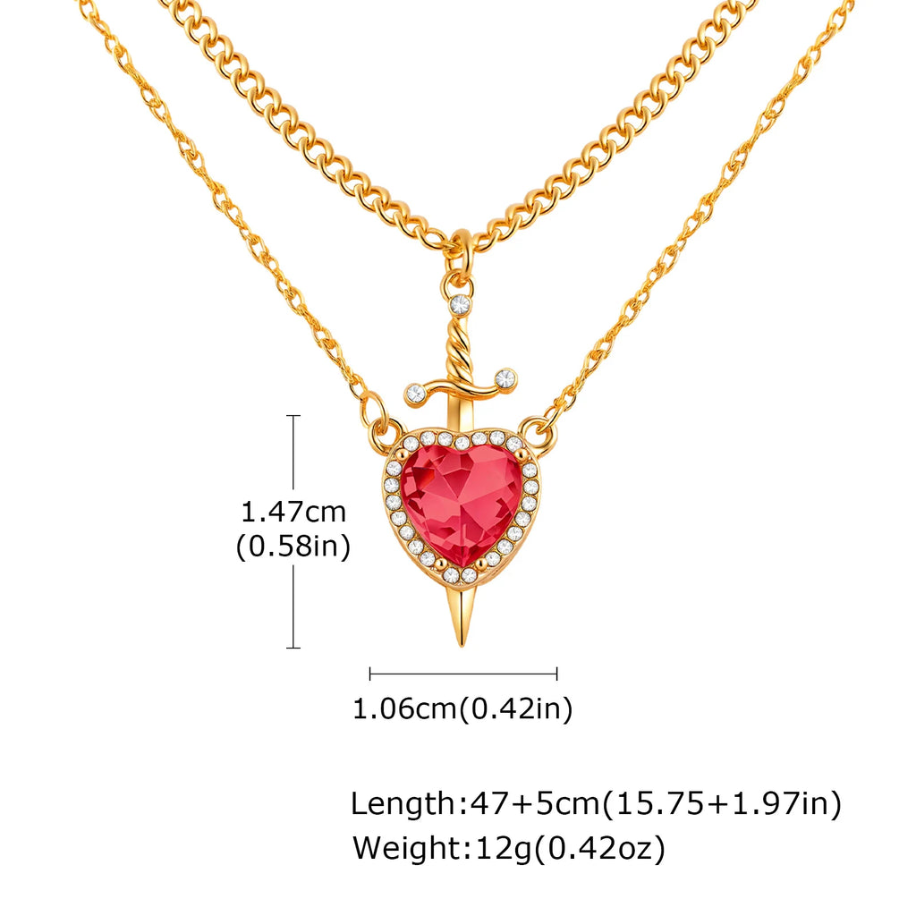 Vnox 2pcs Pendant Necklace For Women Men Zircon Heart And Sword Can Assemble Love Couple Gold Plated Choker Charm Jewelry Gifts