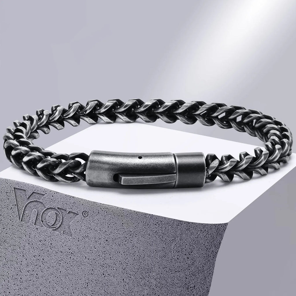 Vnox 6.3mm Vintage Bracelets for Men, Double Layer Cuban Chain, Franco Foxtail Chain Bracelet, Retro Srainless Steel Wristband