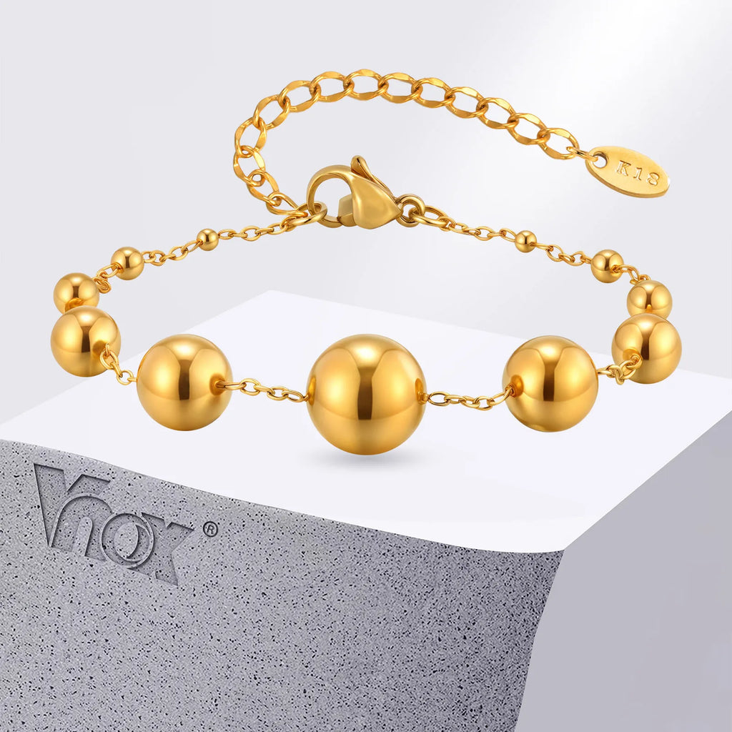 Vnox Big And Small 10 Round Ball Bracelets Stainless Steel Fashion Beaded Chain Bracelet For Women Jewelry Set Party Gifts