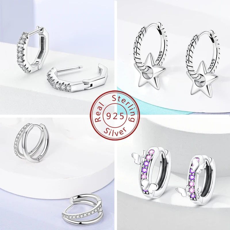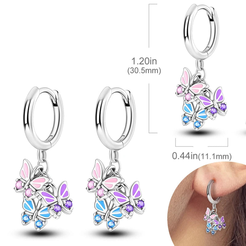 Boucles d'oreilles pour femmes 2024 Ventes chaudes Boucles d'oreilles créoles en argent 925 Boucles d'oreilles pendantes en forme de cœur et de papillon pour femmes et filles Bijoux de fête Cadeaux