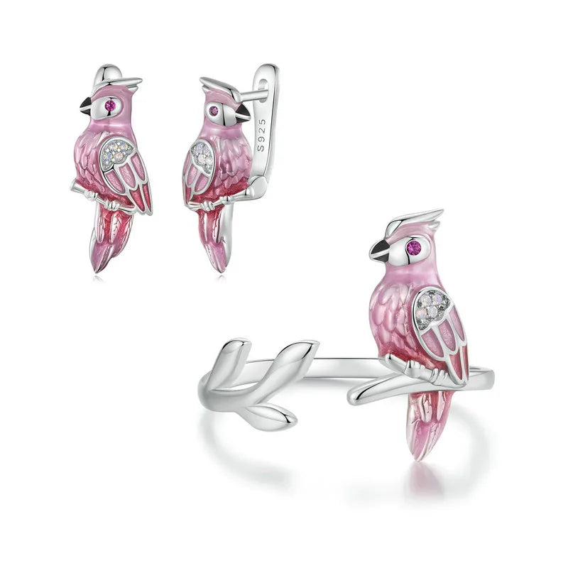 Numéro de certificat : Ensemble de bijoux perroquet rose