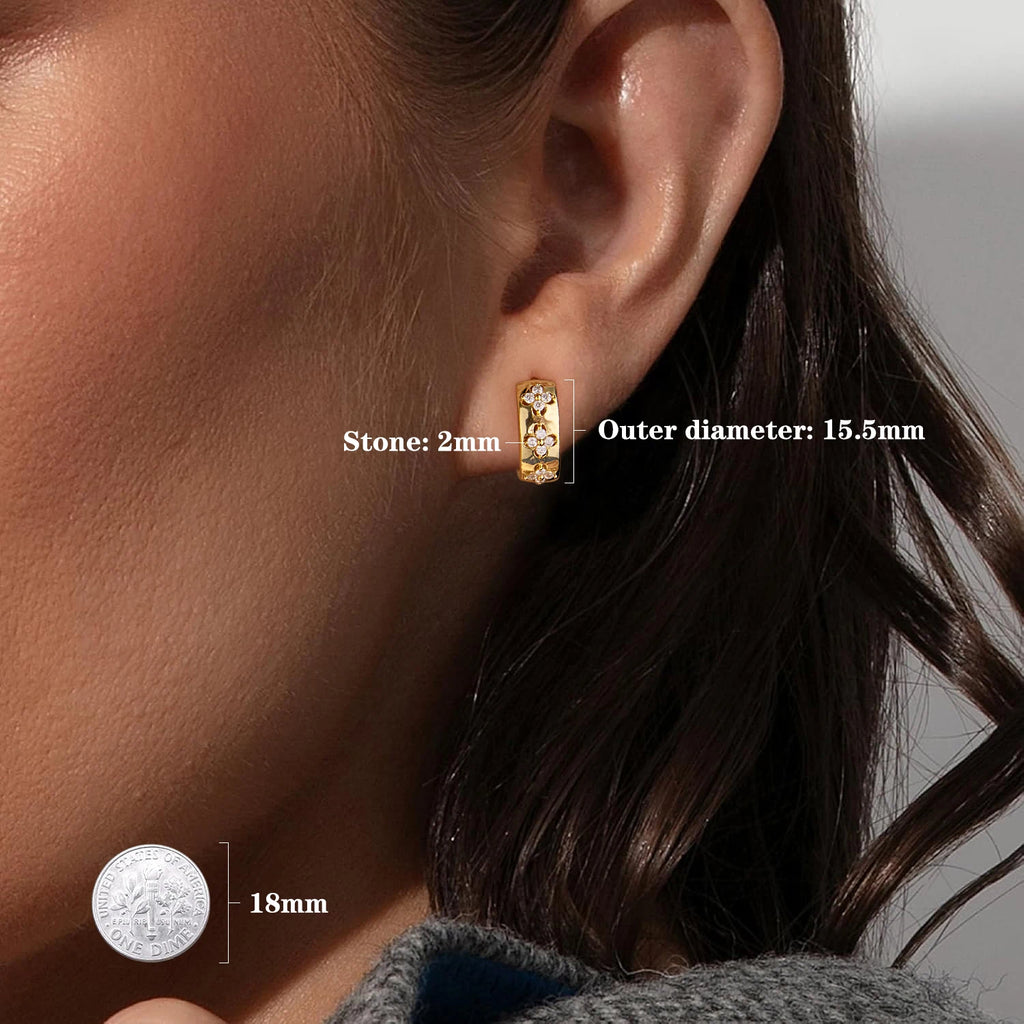 BAMOER Four-Leaf Clover Moissanite Huggies Earrings 925 Sterling Silver Flower Hypoallergenic Jewelry for Women Lucky Gift