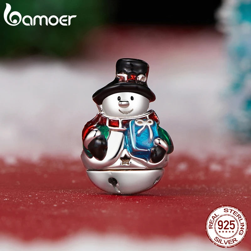 BAMOER Solid S925 Silver Xmas Snowman Charm Bead fit Original Bracelet DIY Bamoer Charm for Jewelry Making Christmas Gift