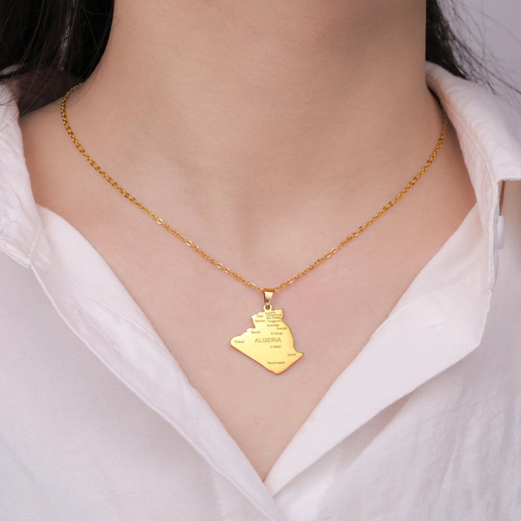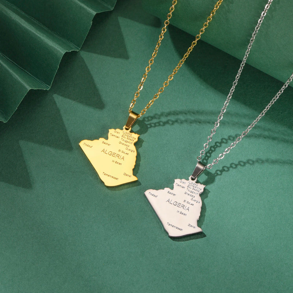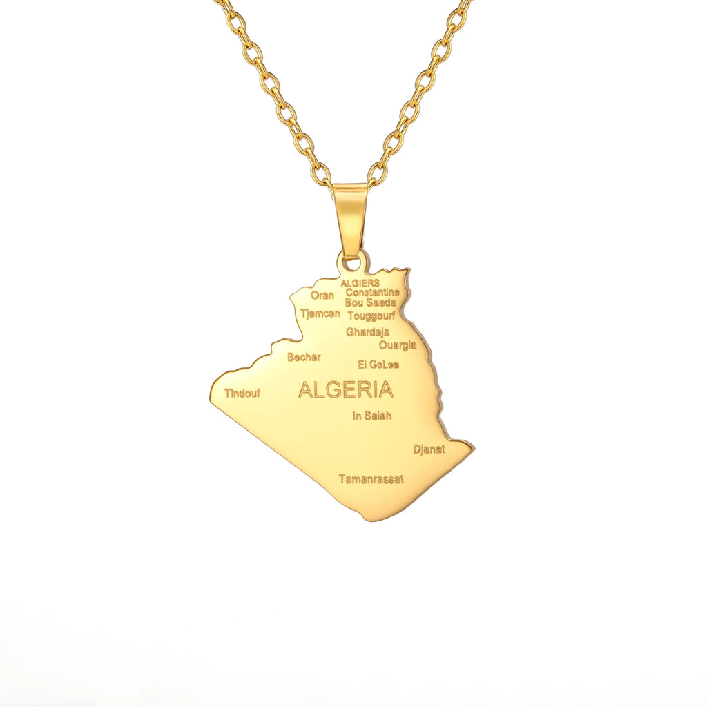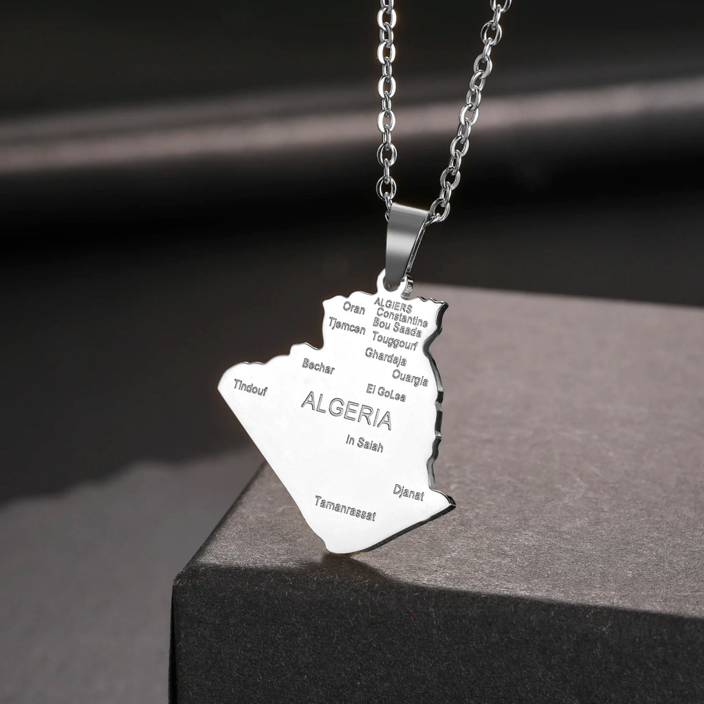 Dreamtimes Algeria Map City Name Necklace Pendant Stainless Steel Map of Algerian Chain Africa Country Jewelry Gift