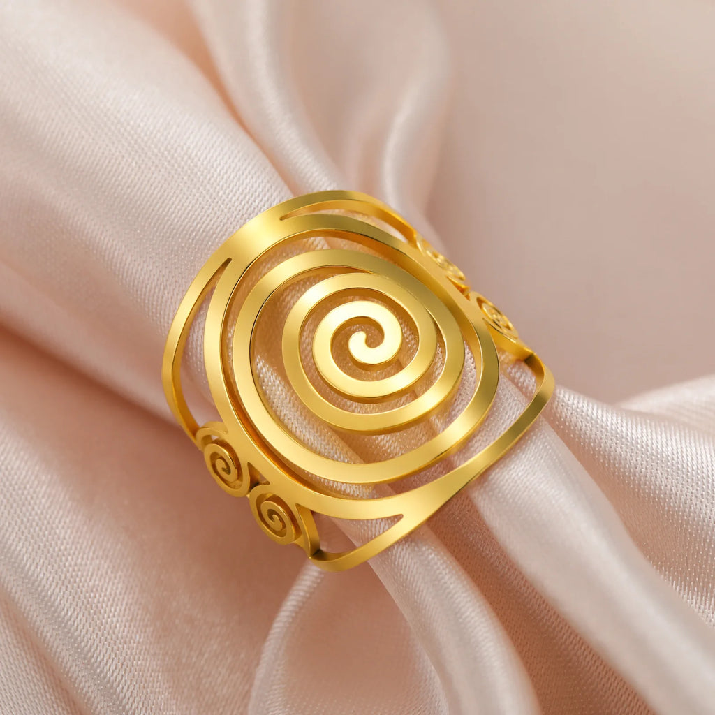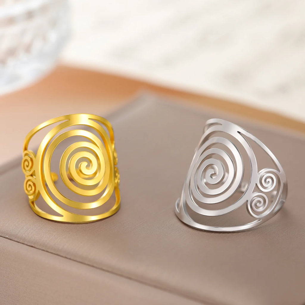 Dreamtimes Fashion Round Geometric Braided Spiral Swirl Ring for Women Stainless Steel Adjustable Thumb Open Ring Jewelry Gifts