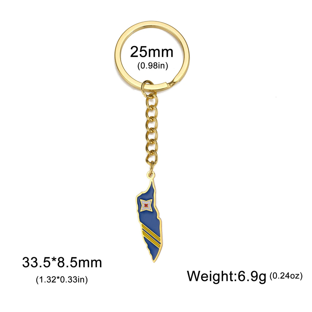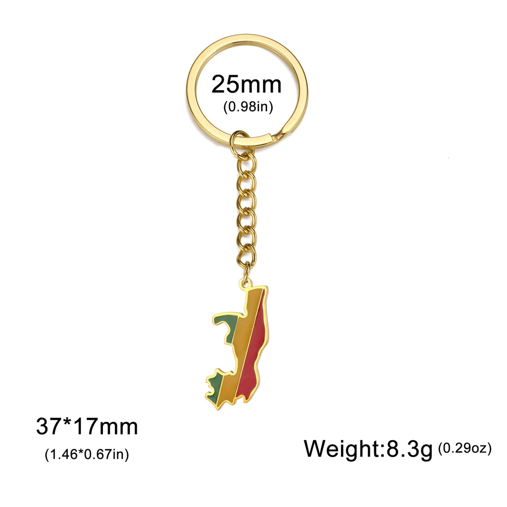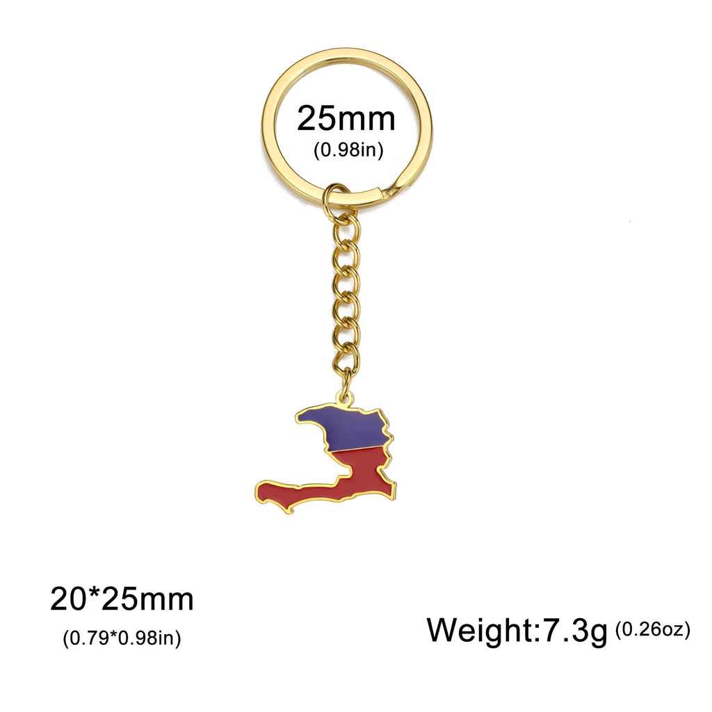 Dreamtimes France Poland Mexico Map Pendant Keychain for Women Men Stainless Steel Key Ring Qatar Ghana Syria Haiti Jewelry