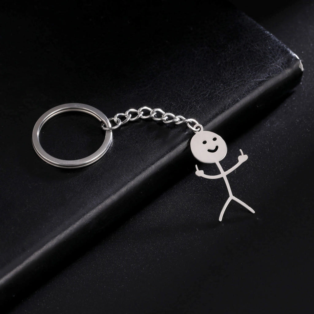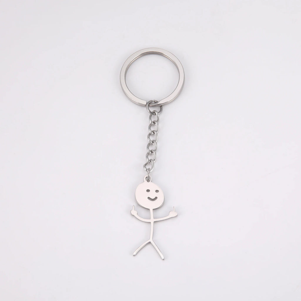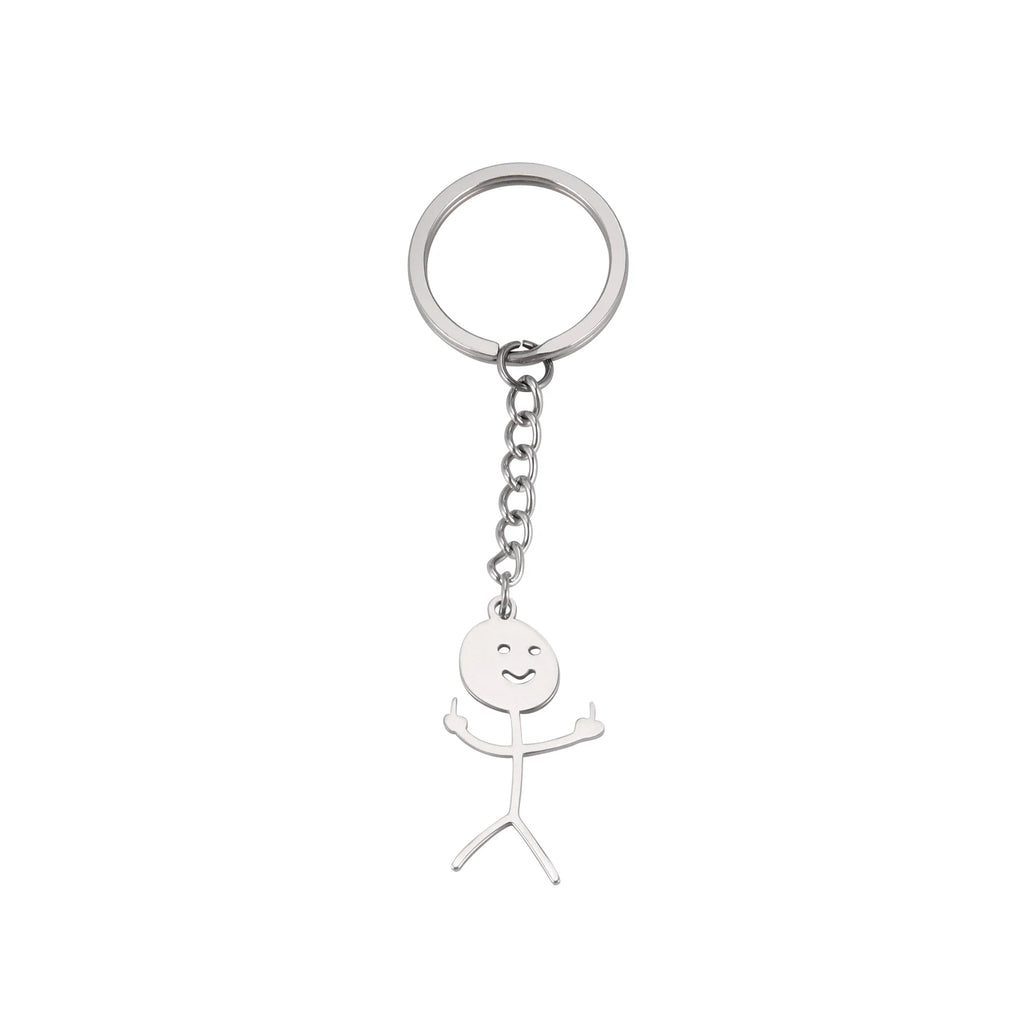 Dreamtimes Funny Doodle Key Chain Graffiti Stainless Steel Middle Finger Stickman Men Pendant Key Rings Jewelry Couples Hip-hop