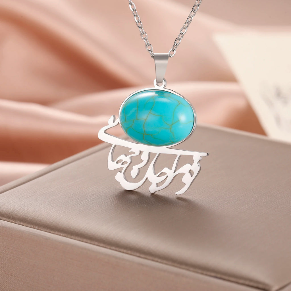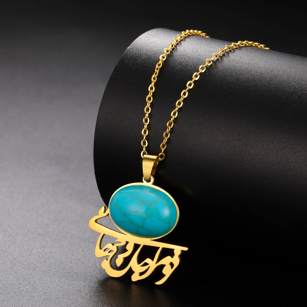 Dreamtimes Iranian Persian Khoda Sapphire Necklaces for Women Trendy Islam Allah Jewelry Stainless Steel Pendant Accessories