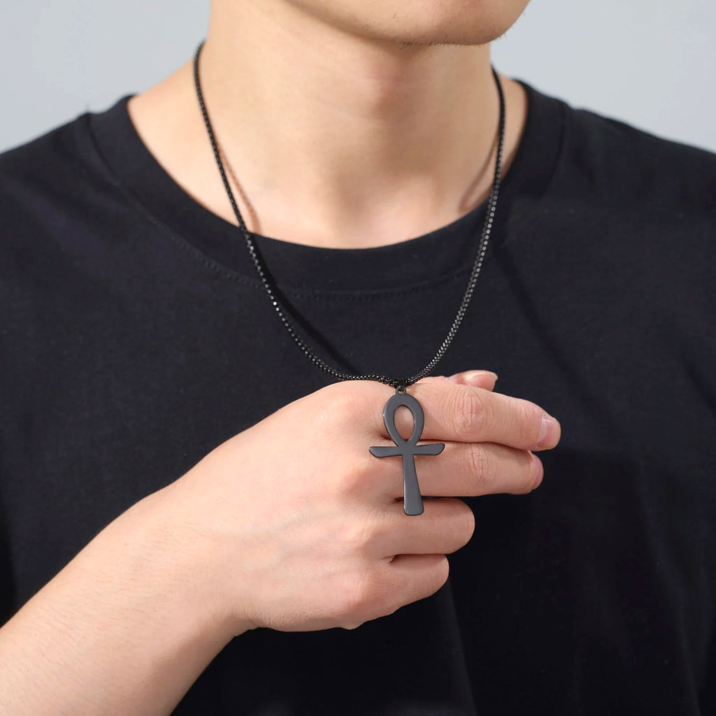 Dreamtimes Simple Classic Cross Stainless Steel Necklace Egyptian Ankh Life Symbol Antique Pendant Long Chain Necklaces Jewelry