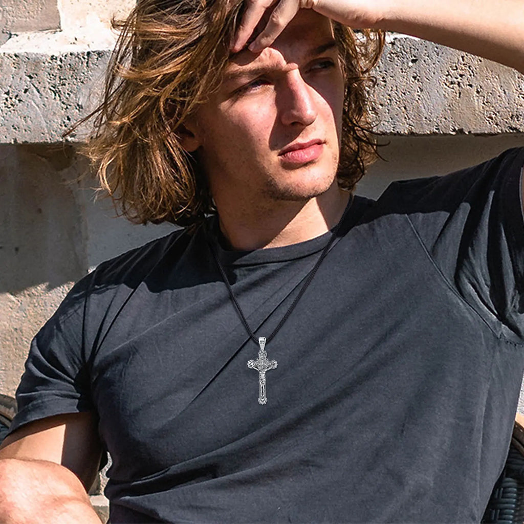 Eudora 925 Sterling Silver Saint Benedict Rings & Necklace San Benedict Crucifix Cross Jewelry Set Religious Gift for Man Women