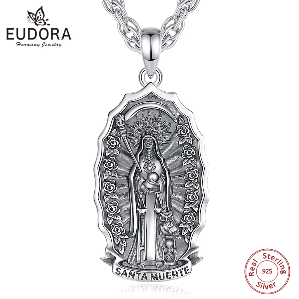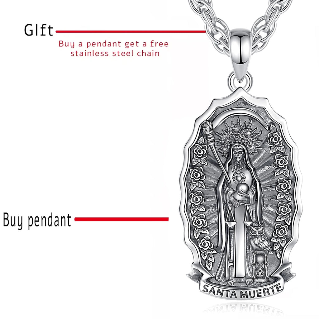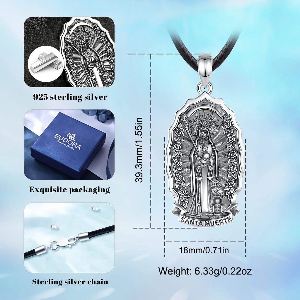 Eudora 925 Sterling Silver Santa Muerte Necklace for Women Man Holy Death Scythe Mexican Pendant Personality Jewelry Fine Gift