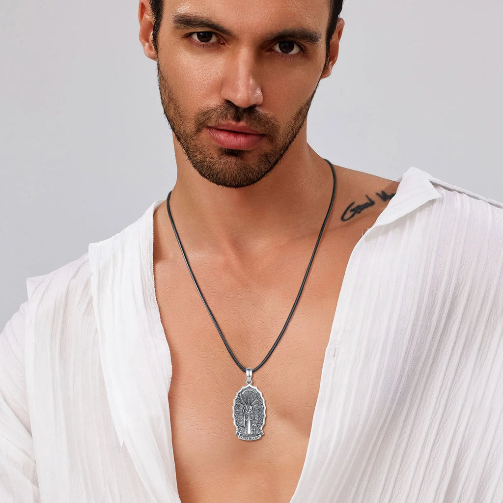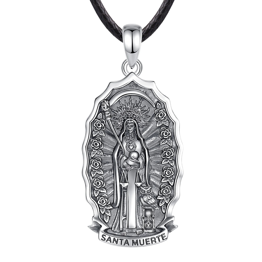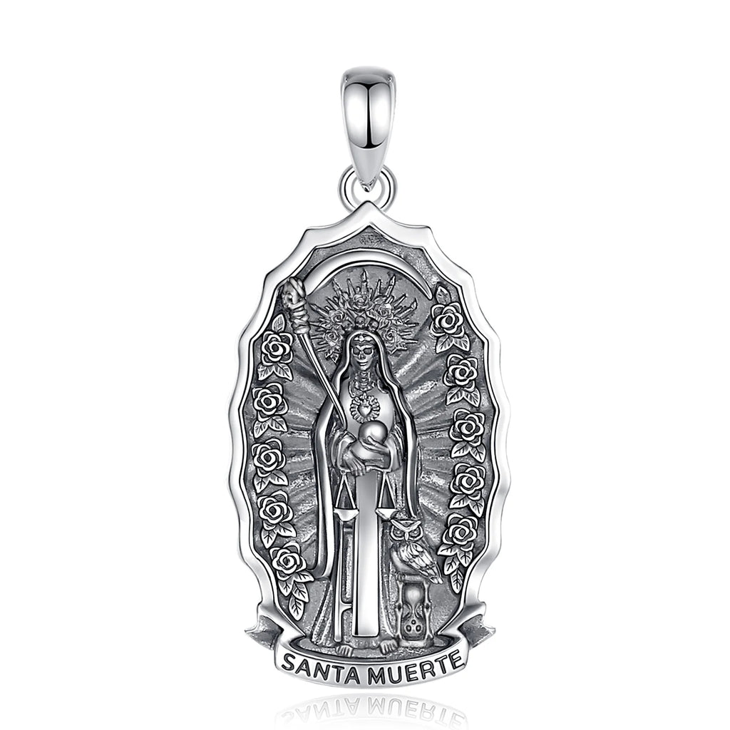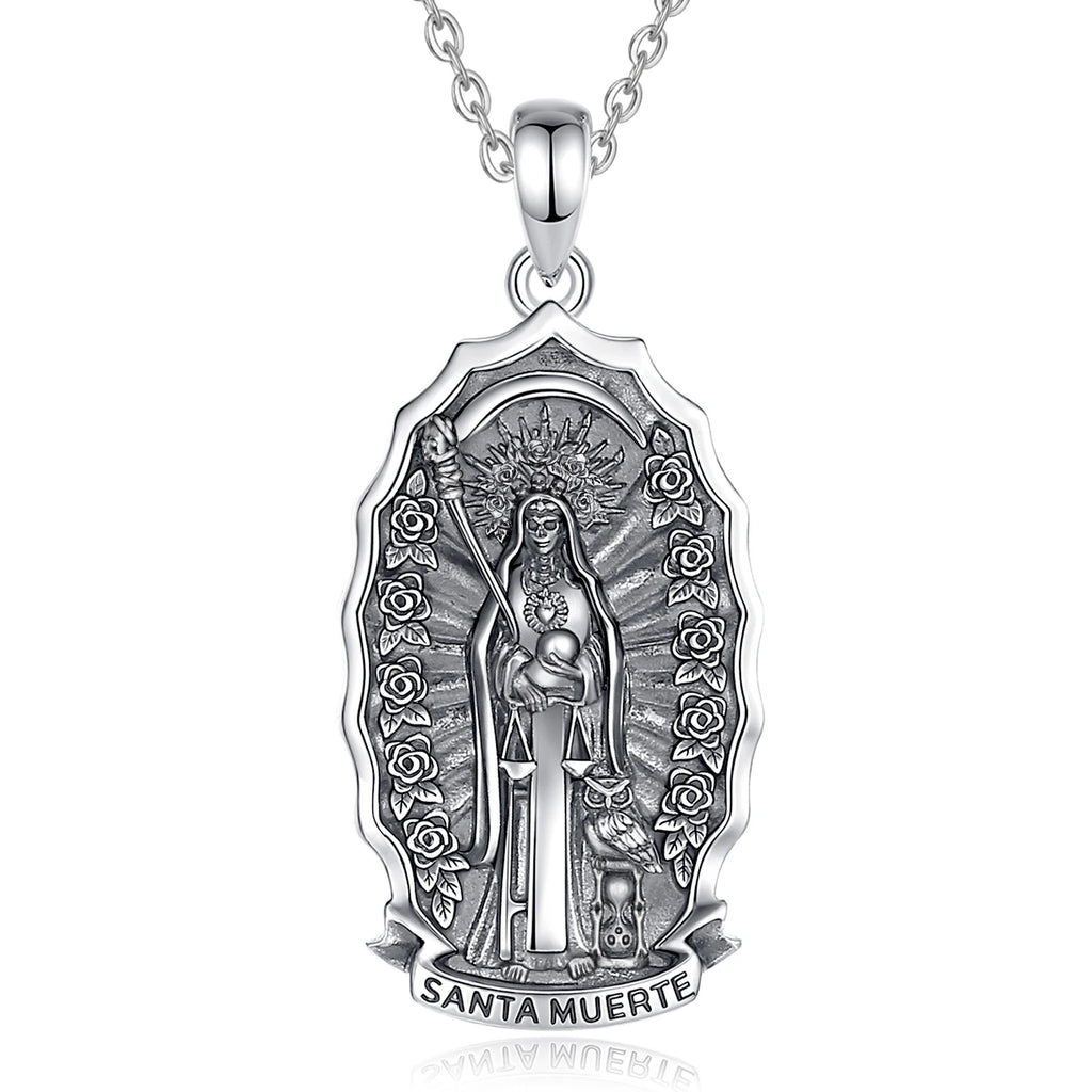 Eudora 925 Sterling Silver Santa Muerte Necklace for Women Man Holy Death Scythe Mexican Pendant Personality Jewelry Fine Gift