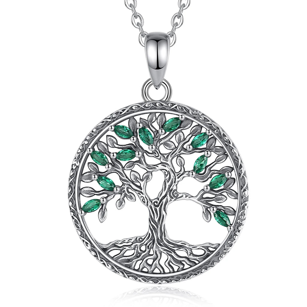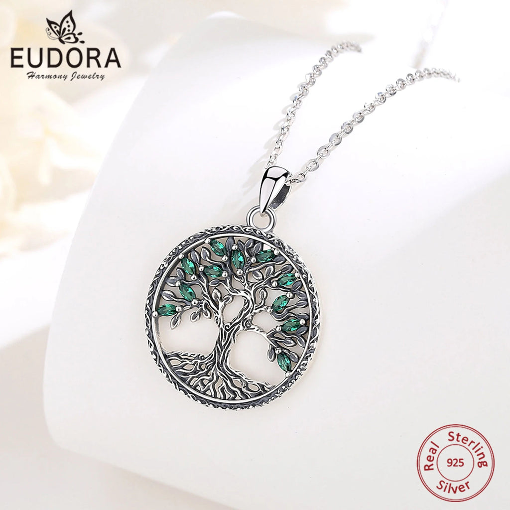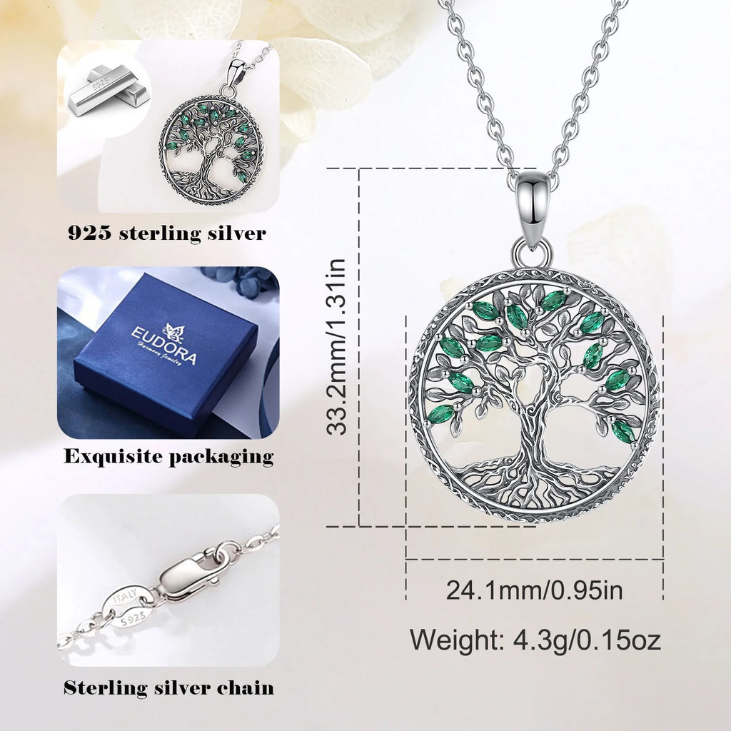 Eudora 925 Sterling Silver Tree of Life Necklace for Women Green Zircon Yggdrasil Pendant Tree Jewelry Gift for Mom and Grandma
