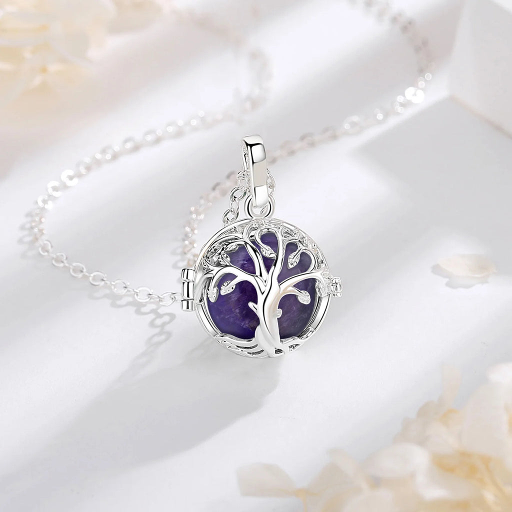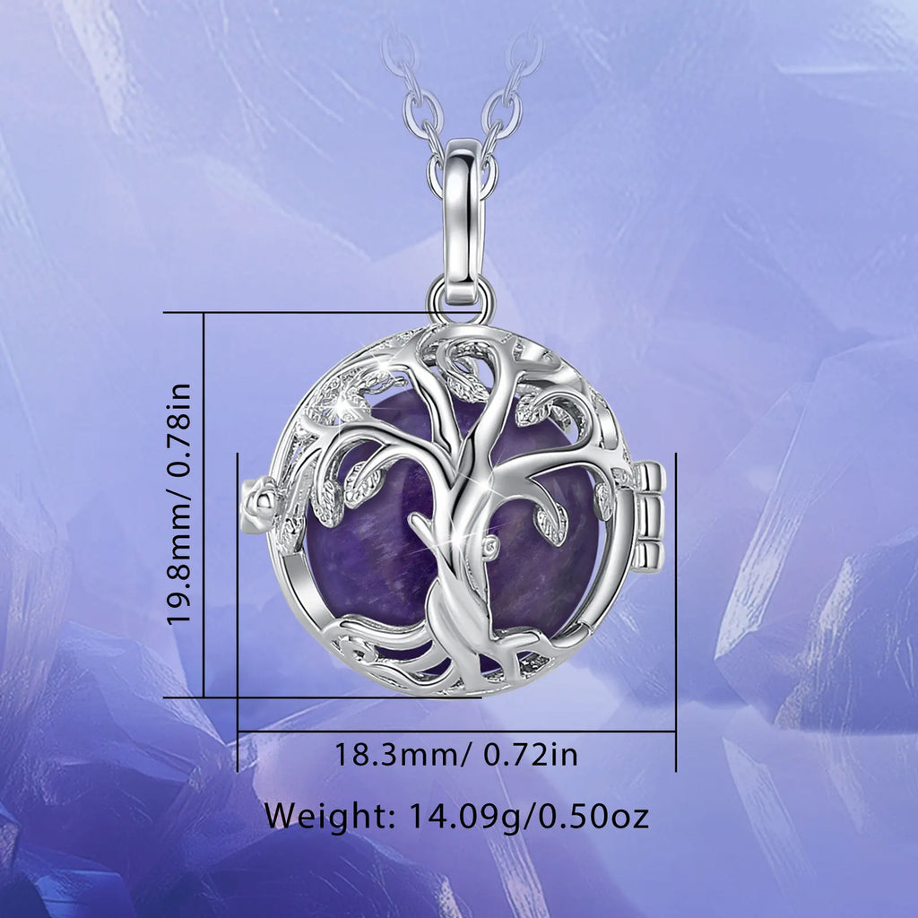 Eudora Tree of Life Cage Amethyst Necklace Energy Healing Crystal Stone Obsidian Lapis Pendant Spiritual Jewelry Meditation Gift