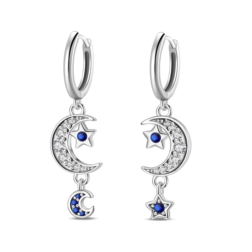 Fashion 925 Silver Earring Blue Zircon Star Moon Butterfly Irregularity Earrings For Woman Fine Engagement Birthday Jewelry Gift
